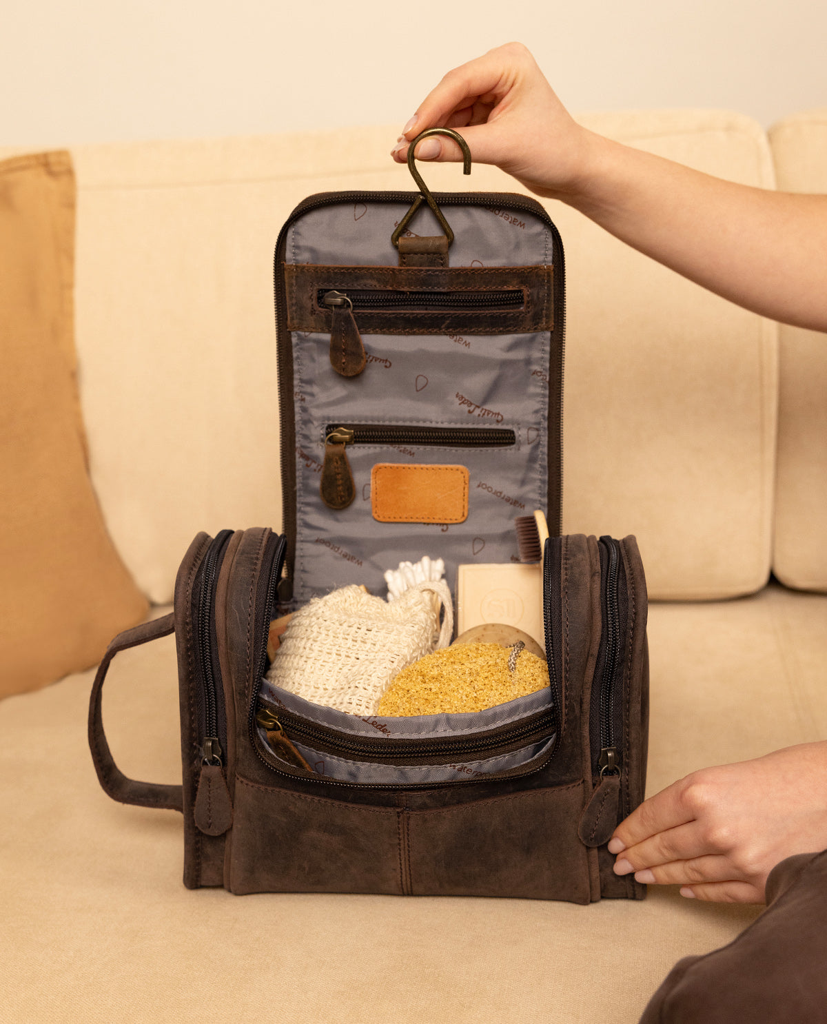 Als je een kleine kabouter was, zou je in deze toilettas supergoed verstoppertje kunnen spelen. 'Chester' biedt ongelooflijk veel mogelijkheden om al je toiletartikelen veilig op te bergen. Naast zijn veelzijdige vakken zorgt hij ook voor de nodige functionaliteit wanneer alles netjes opgeborgen moet worden. In de twee zijvakken kun je alles goed kwijt. Dankzij het handige haakje kun je "Chester" in elke badkamer ter wereld eenvoudig ophangen. De waterafstotende binnenkant is ook bestand tegen kleine shampoo-ongelukjes. En omdat het bij Gusti Leder niet alleen om functionaliteit gaat, is onze toilettas ook nog eens super stijlvol. Als kers op de taart kun je kiezen tussen stijlvol bruin en elegant zwart. Wat wil je nog meer? Met deze slimme toilettas ben je altijd goed uitgerust op reis. Geïnspireerd door de urban flair van Berlijn combineert "Chester" stijl met functionaliteit.