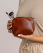 Klein, maar fijn en ruimte voor het meest noodzakelijke - dat biedt "Leo". De toilettas van hoogwaardig buffelleer overtuigt door zijn design en praktische gebruiksgemak. Al je make-up spullen kunnen bijvoorbeeld in perfecte staat worden gehouden. Het beste is dat hij is uitgerust met waterdicht polykatoen aan de binnenkant! Mocht de concealer of de lipgloss een beetje afgeven, dan kun je dit ongelukje snel en gemakkelijk oplossen. Een ritssluiting beschermt de binnenkant en voorkomt dat er iets uit valt. Deze kleine leren toilettas past in elke tas en je hebt altijd alles wat je nodig hebt voor een opknapbeurt bij de hand.