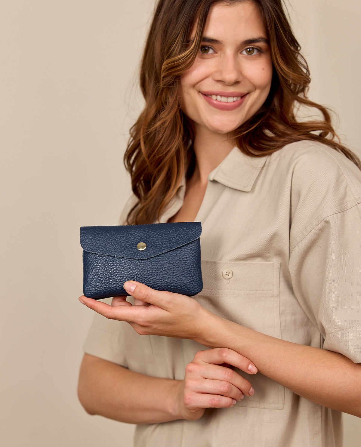 opbergtas organizer kleine leren tas dames blauw leer - Made in Italy