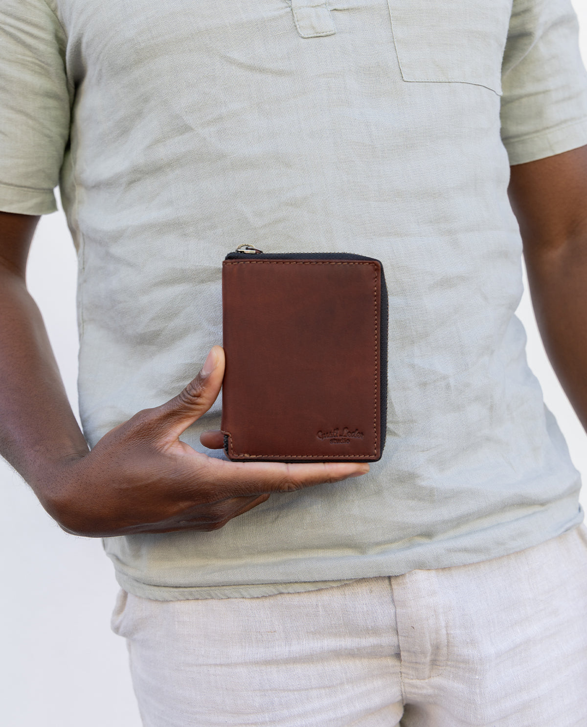 Van binnen heeft "Darian" een uitgebreid systeem met een vak voor biljetten, een apart vak voor muntgeld dat met een drukknoop kan worden geopend en daarnaast een van de in totaal drie diepe steekvakken. "Darian" is gemaakt van hoogwaardig gelooid rundleer en valt op door zijn super fijne gevoel, vorm en stevigheid. Het ontwerp van "Darian" wordt afgerond door een ritssluiting rondom. Zo kan er echt niets meer uitvallen.