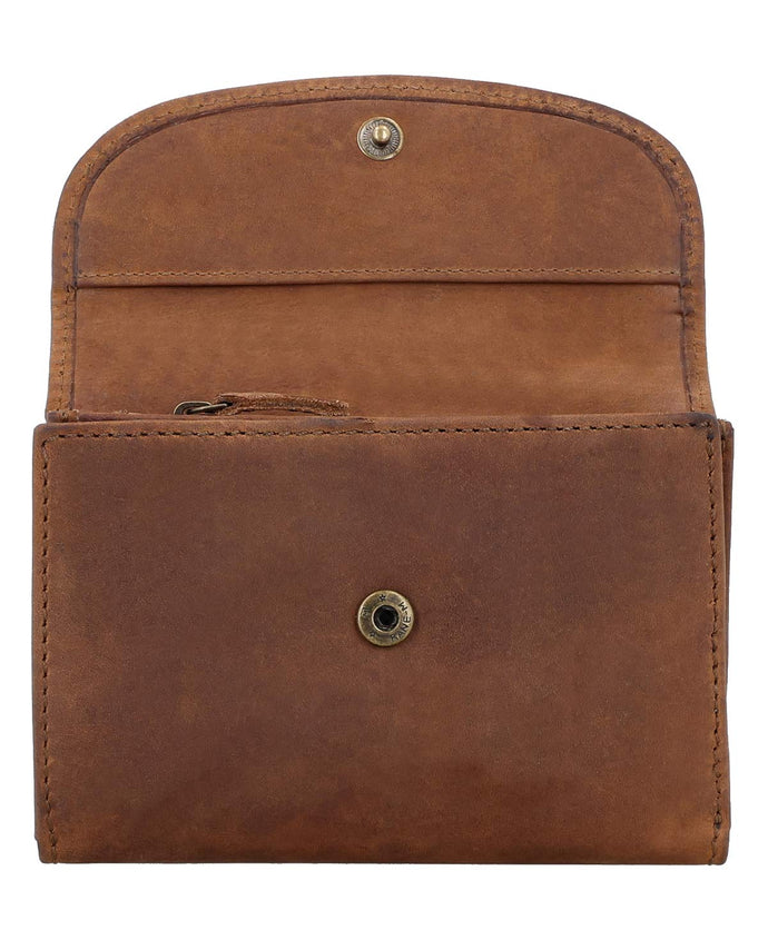 De "Bryanna" portemonnee van hoogwaardig bruin leer combineert tijdloos design met uitstekende functionaliteit. Met zijn veilige drukknoopsluiting zorgt het ervoor dat al jouw waardevolle spullen veilig en beschermd worden opgeborgen. De portemonnee biedt talrijke kaartsleuven, die slim zijn ingedeeld, zodat je jouw kaarten overzichtelijk en snel bij de hand hebt. Vooral praktisch zijn de binnenliggende ritsvakken, die ruimte bieden voor munten of andere kleine waardevolle spullen.