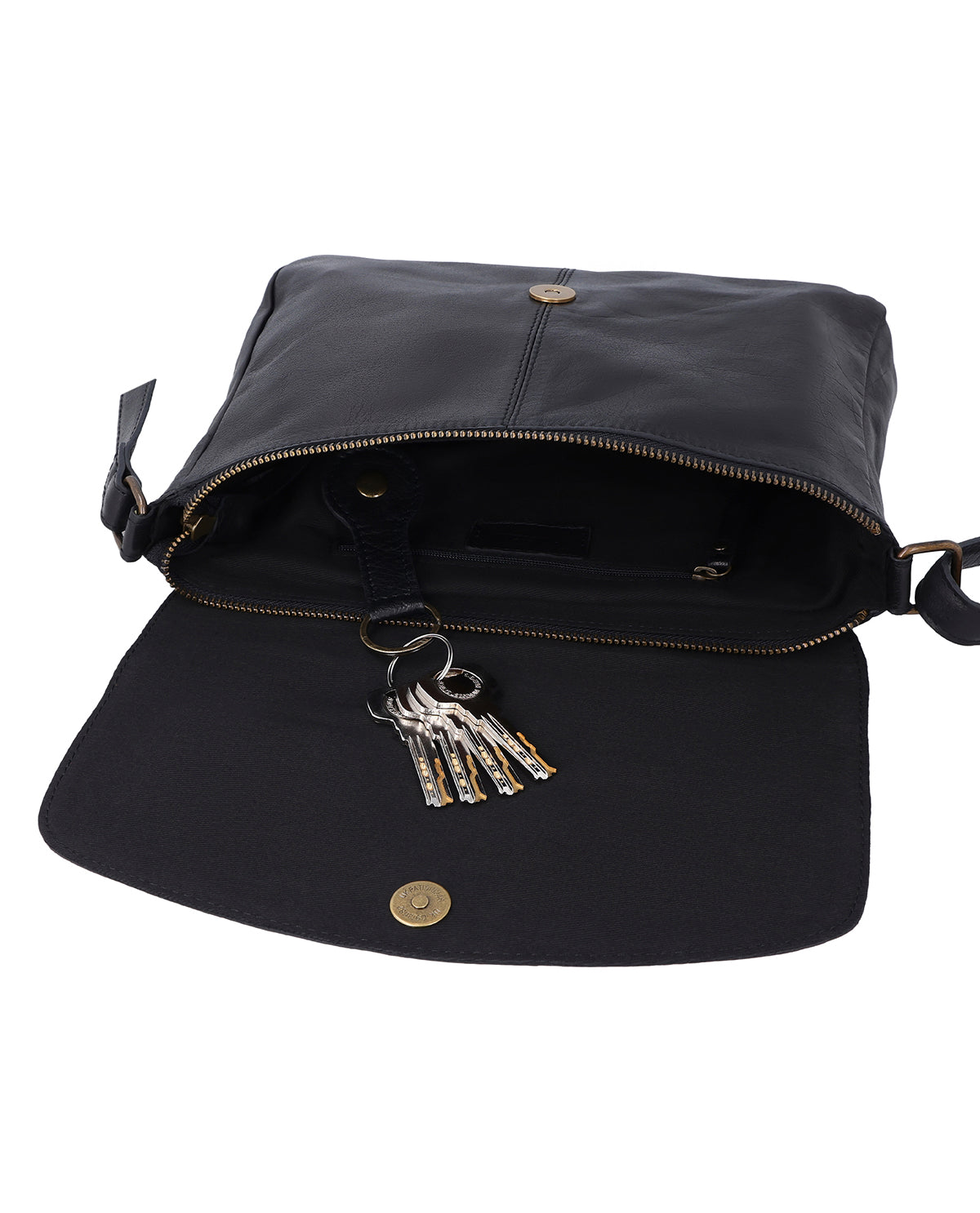 Een zwarte handtas is net zo'n klassieke must-have als de beroemde little black dress. Onze Maisie ziet er niet alleen subtiel uit, maar past ook perfect bij elke outfit, of het nu voor dagelijks gebruik is of voor speciale gelegenheden. Met genoeg ruimte voor je portemonnee, smartphone en sleutels, plus een notitieboekje of make-uptasje, heeft ze alles wat je nodig hebt. Om te voorkomen dat je lang naar je sleutels moet zoeken, heeft Maisie ook een handige sleutelringhouder. Dankzij de steekvakken aan de zijkant en een extra binnenvak met rits houd je altijd het overzicht. Voor extra veiligheid onderweg heeft Maisie ook een geheim AirTag-vakje, zodat je je tas altijd makkelijker terugvindt. Maisie zorgt ervoor dat je altijd goed georganiseerd en stijlvol onderweg bent, zonder in te boeten aan functionaliteit. Geïnspireerd door de Berlijnse grootstedelijke flair, weerspiegelt ze urban chic.