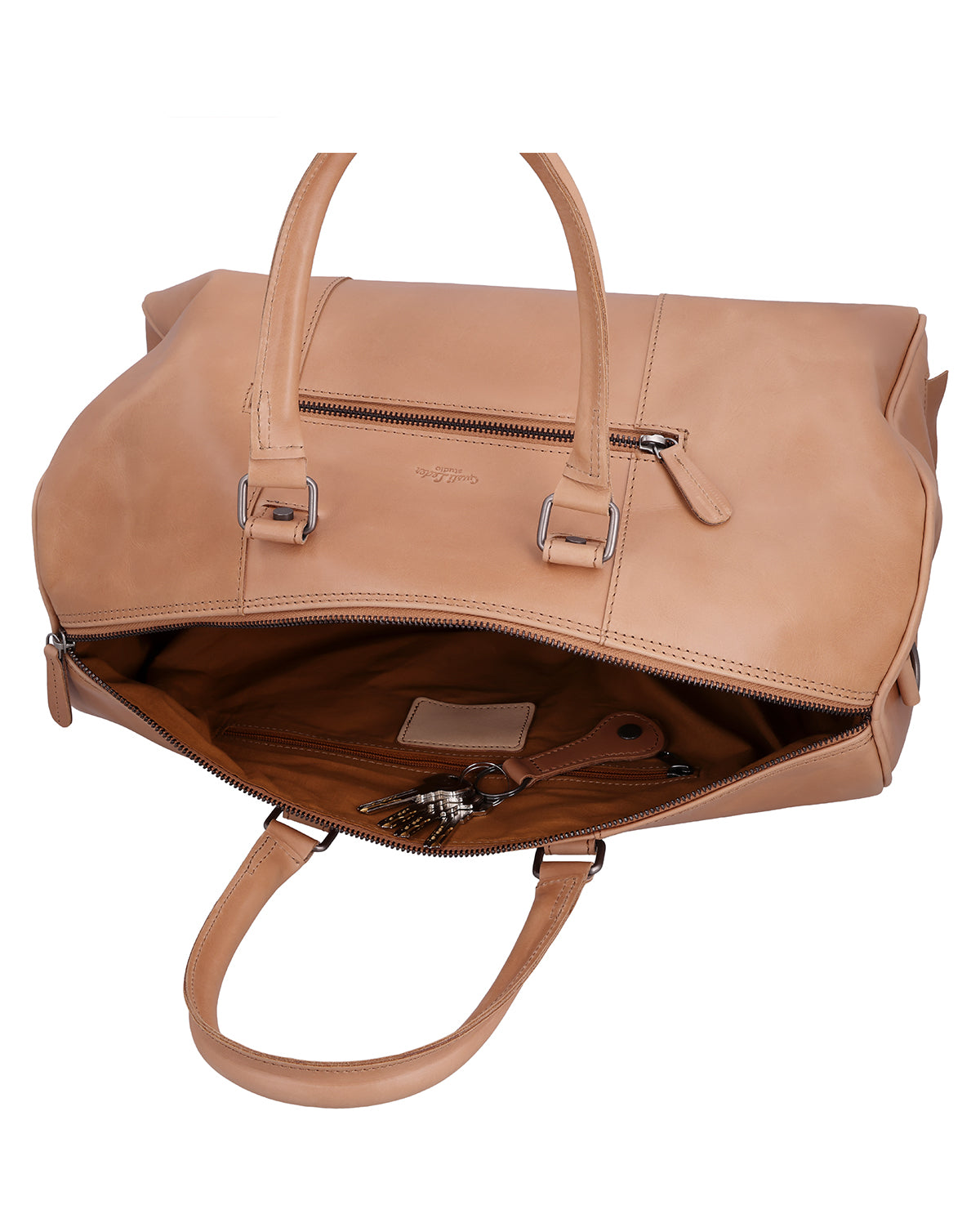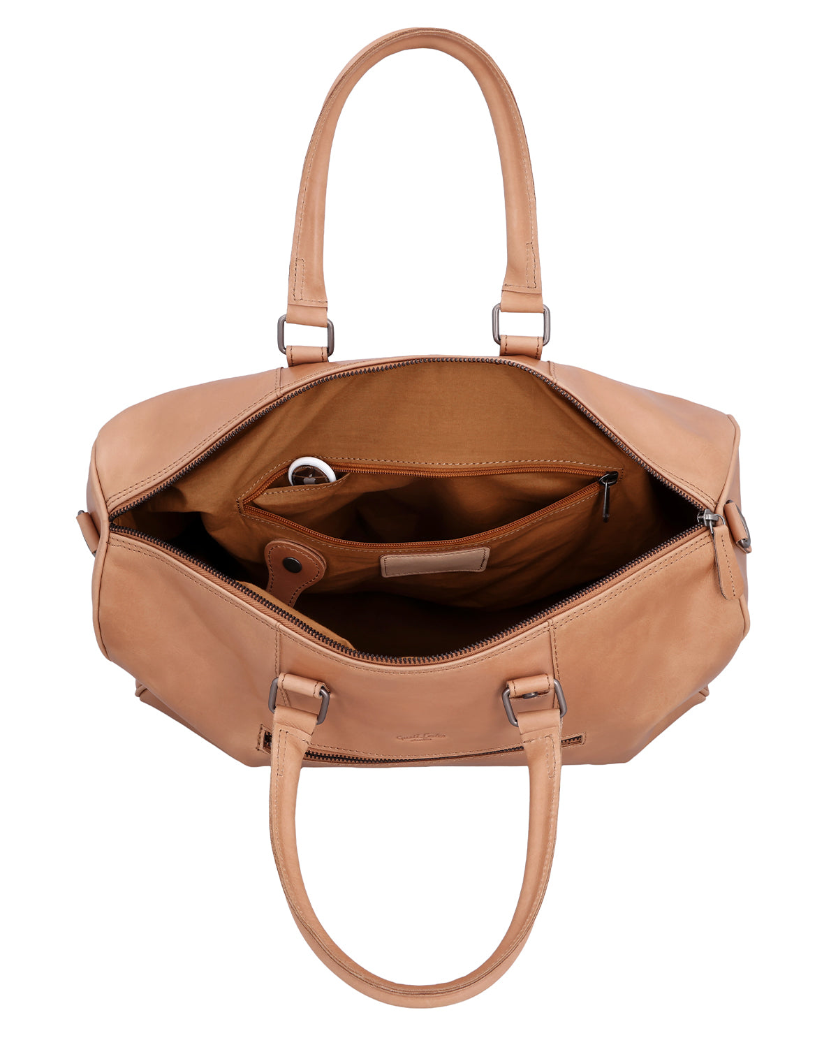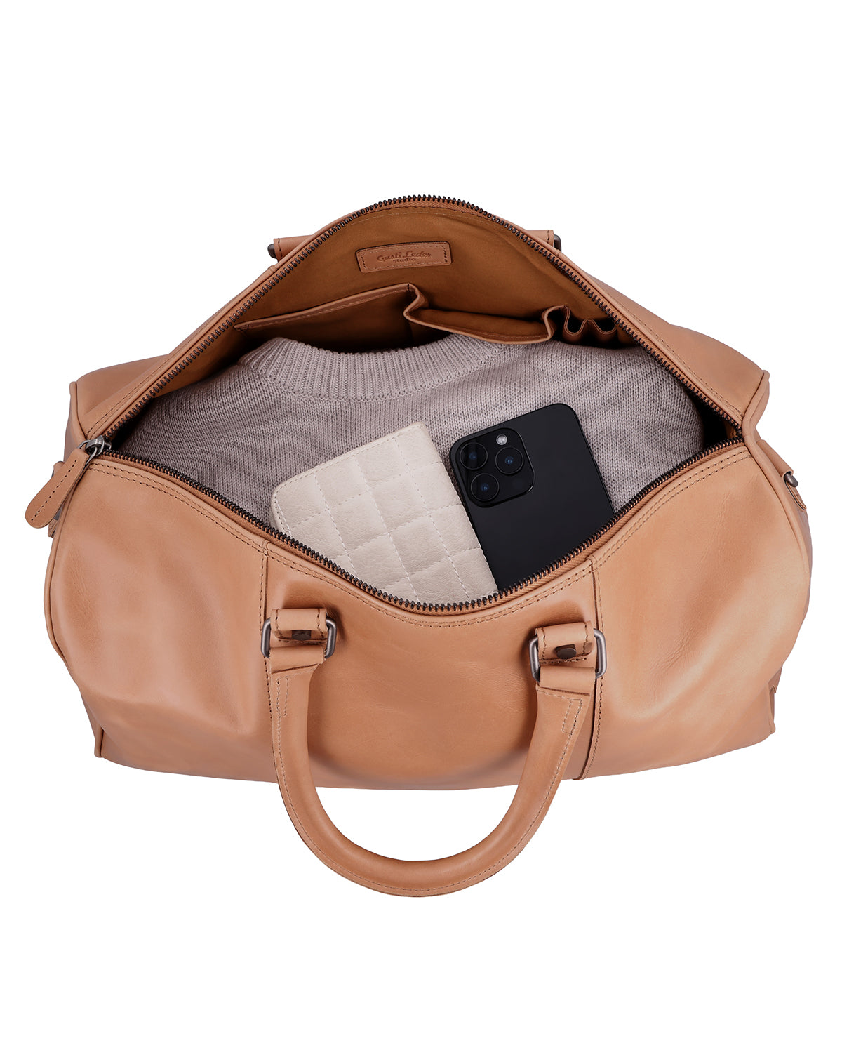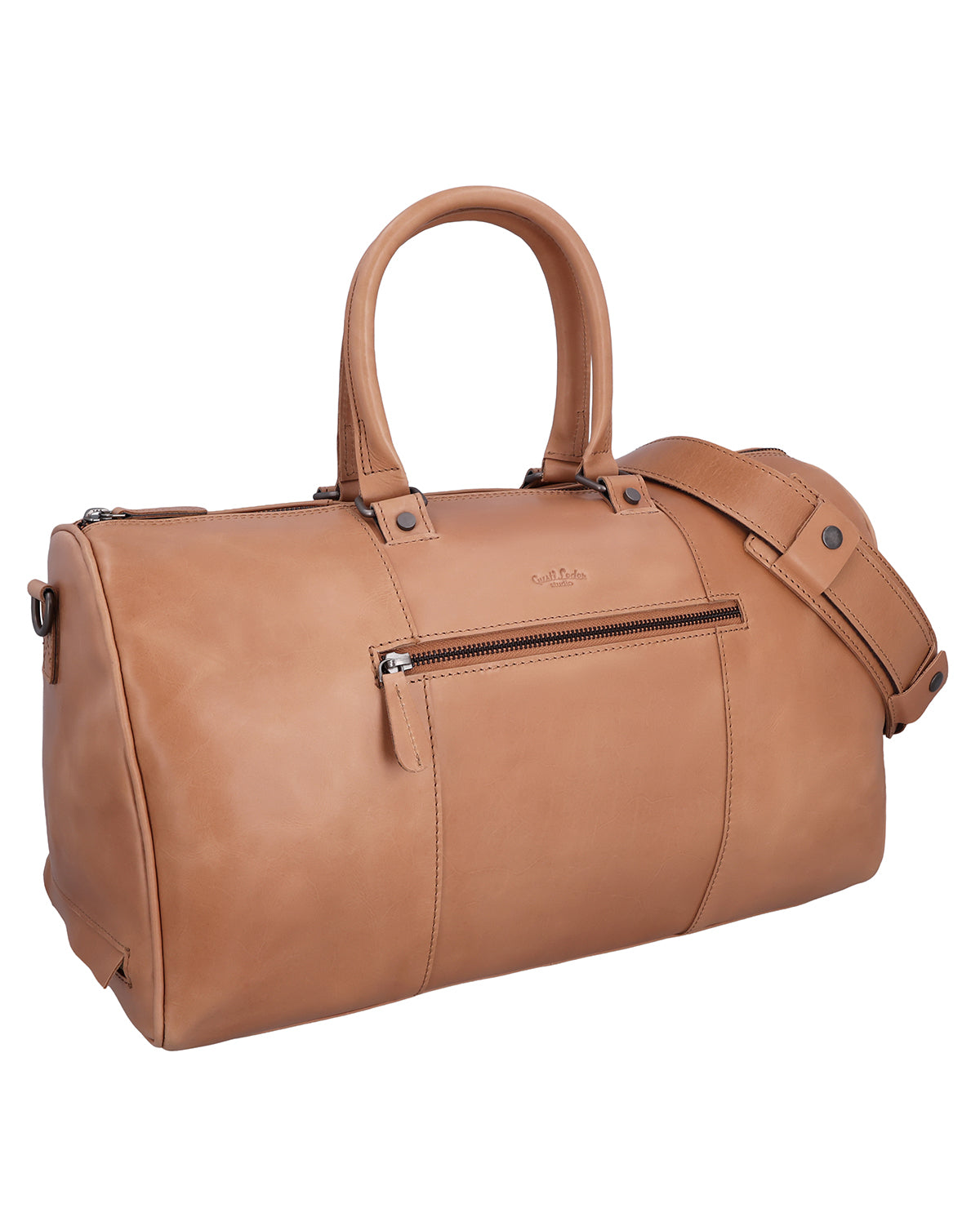 Binnen en buiten heeft "Joris" meerdere vakken met ritssluiting, aangevuld met steekvakken en pennenhouders voor een gestructureerde organisatie. De lange schouderriem is verstelbaar en afneembaar, en een afneembaar schouderkussen zorgt voor aangenaam draagcomfort tijdens langere afstanden. Een stevige metalen ritssluiting sluit de tas veilig af, terwijl een gegraveerde patch ruimte biedt voor personalisatie. Het Gusti-logo aan de binnen- en buitenkant maakt de leren reistas helemaal af. "Joris" is de perfecte keuze voor iedereen die op zoek is naar functionaliteit, comfort en duurzaam leer in één reistas.