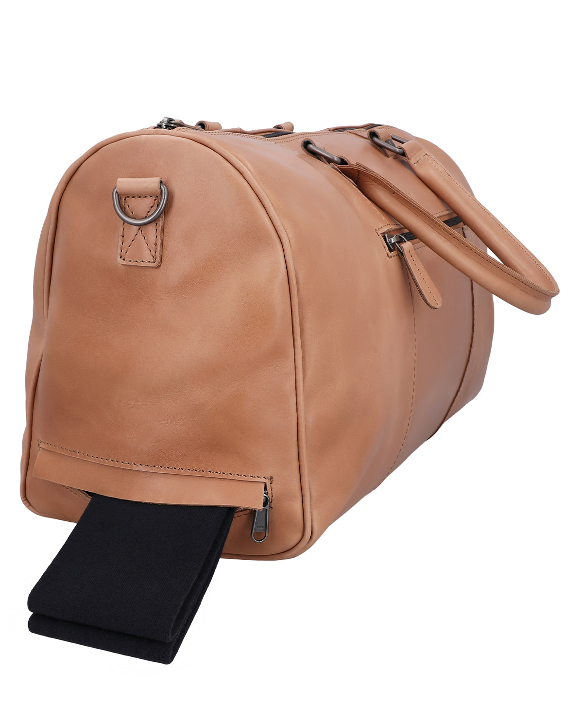 De reistas "Joris" van bruin leer is gemaakt voor dames en heren die onderweg graag overzicht willen houden. Als hoogwaardige leren reistas combineert hij een klassiek ontwerp met slimme extra's die echt van pas komen tijdens het reizen. Een verborgen AirTag-vak zorgt voor extra veiligheid, terwijl een uitneembare sleutelhanger je belangrijkste spullen binnen handbereik houdt. Bijzonder praktisch is het aparte natte vak met waterafstotende voering – ideaal voor gedragen kleding die apart moet worden opgeborgen. "Joris" is een leren tas die orde schept en je onderweg merkbaar werk uit handen neemt.