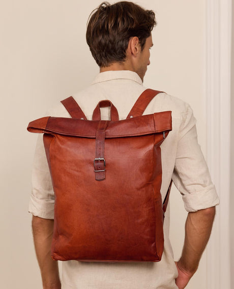 - Voor werk, vrije tijd en reizen: veelzijdige rolltoprugzakken van leer