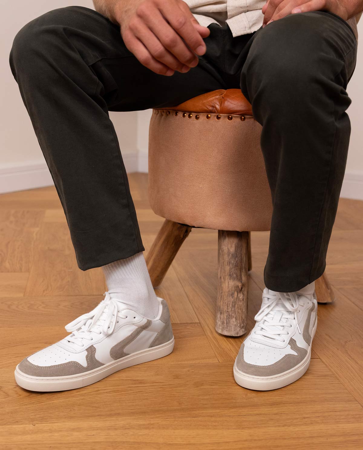 Stijlvolle lichtheid – de "Manoa" sneakers van leer in wit & bruin