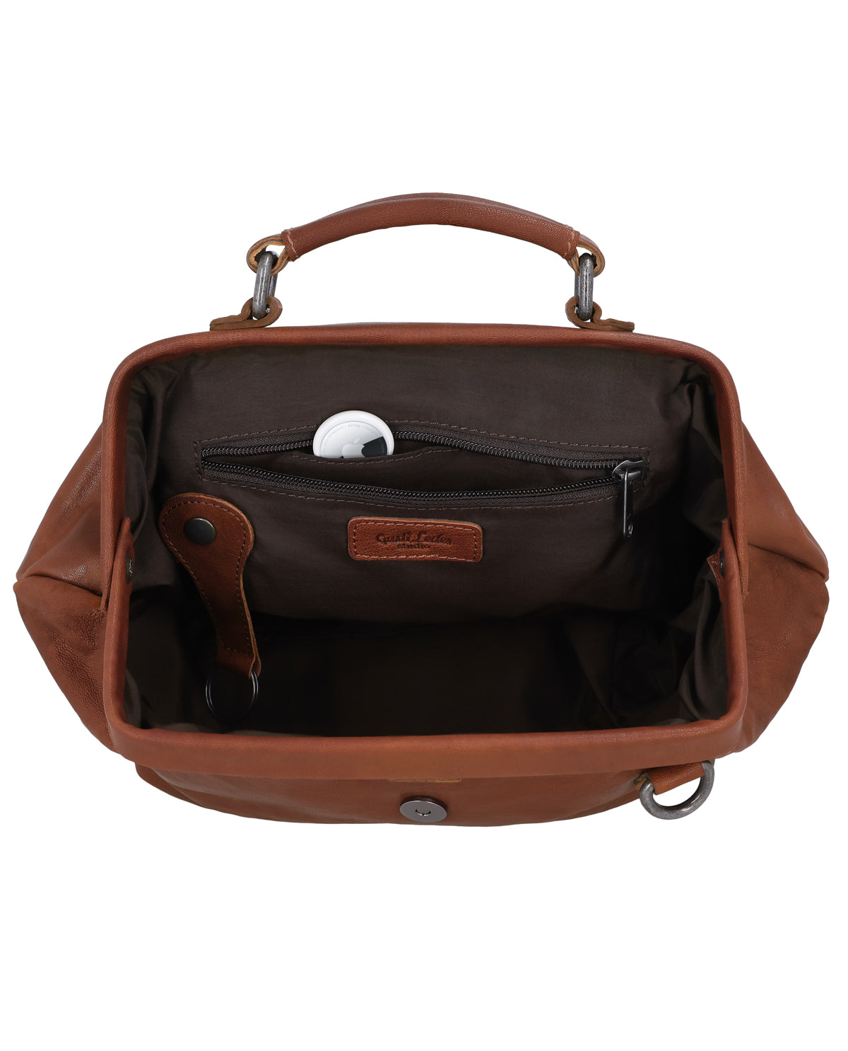 Voor fans van klassieke dokter- en verloskundigenkoffers is 'Lillith' echt een must-have! Ze geeft een nieuwe draai aan deze unieke look en combineert die met het formaat van een compacte handtas. Handig voor elke dag: met deingebouwde sleutelhangerheb je je spullen snel bij de hand en een verborgen AirTag-vakje geeft je onderweg een extra goed gevoel. Bovendien kun je "Lillith" op twee manieren dragen: klassiek in de hand of met de extra draagriem als crossbodytas. Geïnspireerd door de urban flair van Berlijn combineert "Lillith" stijl en functionaliteit.