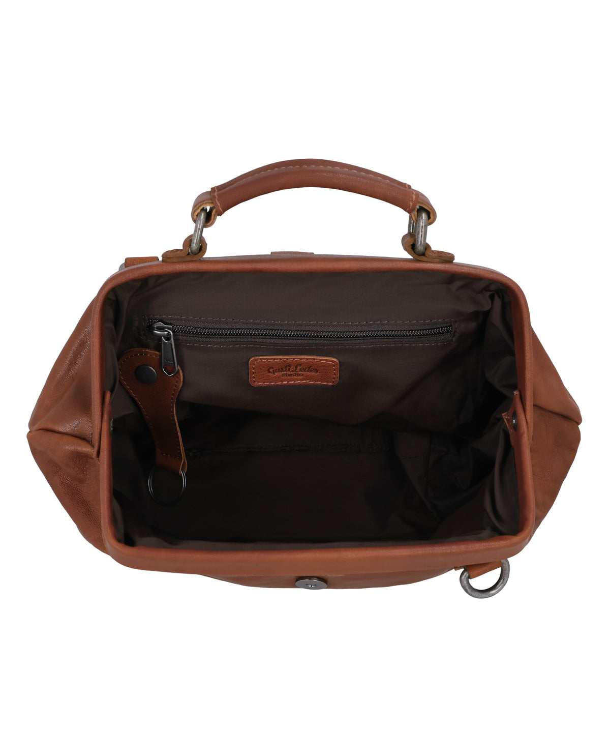 Het ruime hoofdvak met extra binnenvak met ritssluiting biedt je genoeg opbergruimte voor je sleutelbos, grote portemonnee, smartphone en meer – er is zelfs ruimte voor een pocketboek. De in lengte verstelbare en afneembare draagriem zorgt voor maximale flexibiliteit en individueel draagcomfort. Voor een persoonlijk tintje is er ook een graveerbare patch geïntegreerd, terwijl de subtiele Gusti-logopatch de look harmonieus afmaakt. De karakteristieke beugelsluiting is voorzien van een magneetsluiting in gesp-look en zorgt voor extra veiligheid.