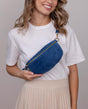 heuptas buiktas schoudertas crossbody tas leren tas dames blauw leer - Made in Italy