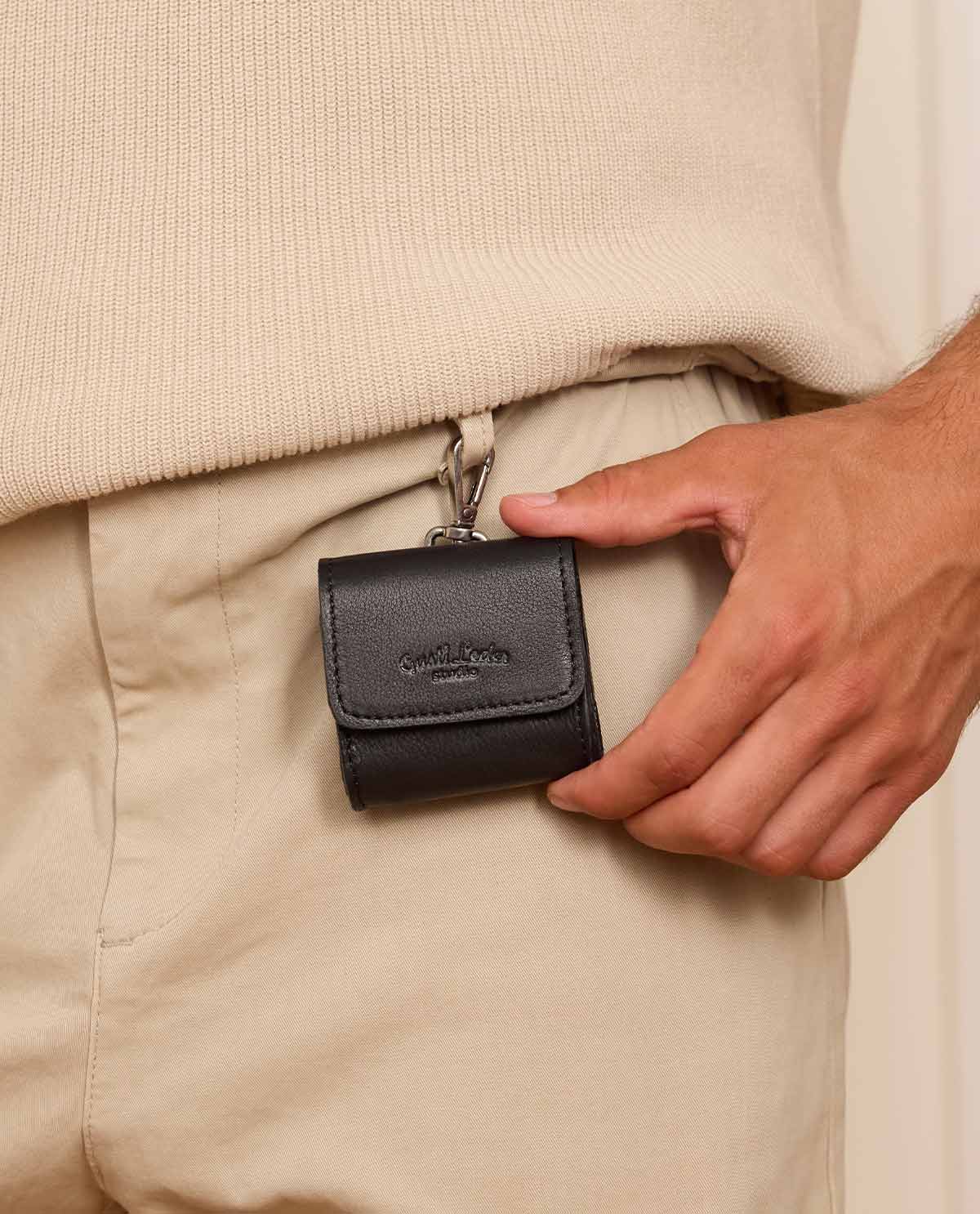 De "Andrico" beschermhoes voor je AirPods en soortgelijke koptelefoons combineert praktische bescherming met een stijlvol ontwerp. Gemaakt van hoogwaardig echt zwart leer, beschermt het je koptelefoons niet alleen tegen krassen en stoten, maar geeft het ze ook een elegante en tijdloze uitstraling. Of je nu onderweg bent of je koptelefoons veilig wilt opbergen – de "Andrico" hoes is de perfecte metgezel voor elke gelegenheid.
