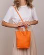 schoudertas leren tas shopper handtas dames oranje leer - Made in Italy