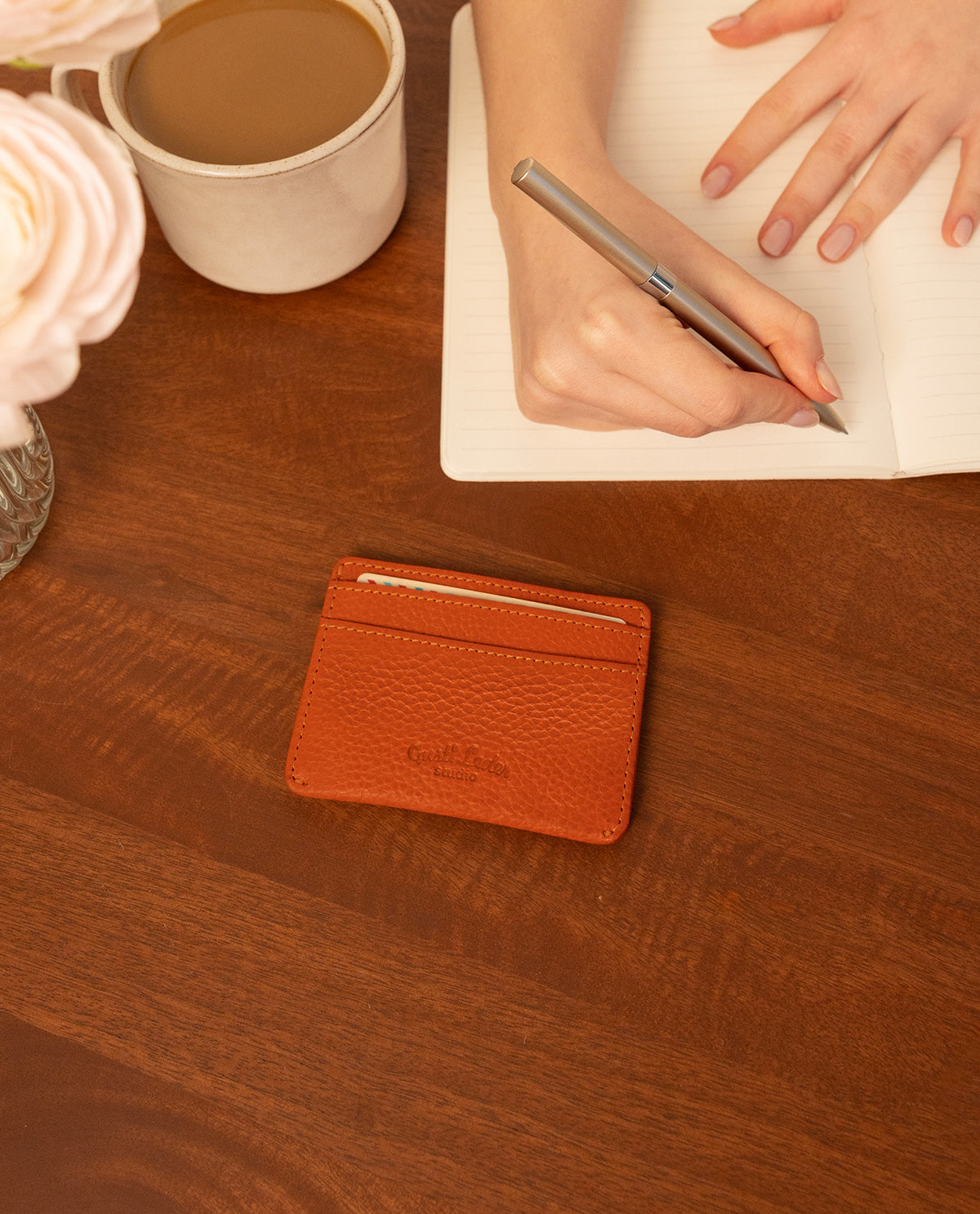 Praktisch und stilvoll – das "Qani" Kartenetui aus orangenem Leder