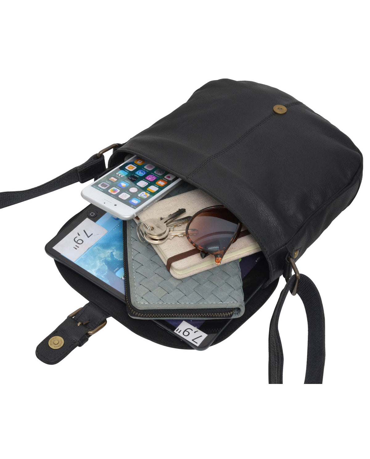 „Candice“ begeistert durch ihr Aussehen und überzeugt mit großzügigem Platzangebot. Neben Portemonnaie, Smartphone und Schlüssel finden hier auch ein eBook-Reader oder ein klassisches Taschenbuch Platz. Für mehr Übersicht sorgen im Inneren mehrere praktische Steckfächer, während ein zusätzliches Reißverschlussfach im Inneren Kleinigkeiten sicher verstaut. Das rückseitige Reißverschluss-Außenfach schützt Deine wertvollsten Habseligkeiten nah am Körper und vor Langfingern, während der Magnetverschluss in Dornschnallenoptik das Hauptfach zusätzlich sichert. Gefertigt aus hochwertigem, LWG-zertifiziertem Rindsleder, hält „Candice“ auch den Strapazen des Alltags mühelos stand. Der längenverstellbare Trageriemen sorgt dabei für genau den Komfort, den Du Dir für Spaziergänge, Städtetrips und Kaffeedates wünschst. Der bodenständig-schicke Vintage-Look macht „Candice“ zum perfekten Begleiter für jeden Tag.