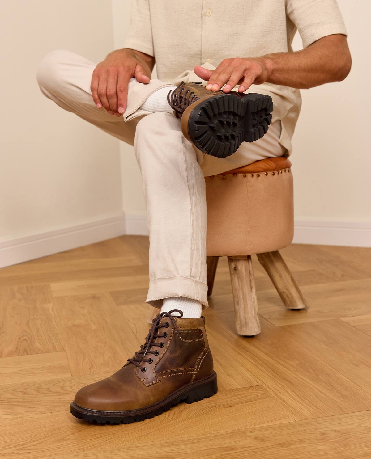 Im Inneren überzeugt "Oberon" mit einem karierten Textilfutter und einer Kombination aus Leder- und Stoffeinsätzen, die Atmungsaktivität und Tragekomfort garantieren. Die Innensohle aus Rindsleder bietet ein angenehmes Laufgefühl, während die Sohle aus Polyurethan Flexibilität und Stabilität kombiniert – ideal für lange Tage auf den Beinen. Ein geprägtes Gusti Leder Logo an der Ferse unterstreicht die hochwertige Verarbeitung und den zeitlosen Stil. Mit "Oberon" genießt Du einen Schuh, der Eleganz, Komfort und handwerkliche Qualität in perfekter Harmonie vereint – für den modernen Mann mit Sinn für Stil.