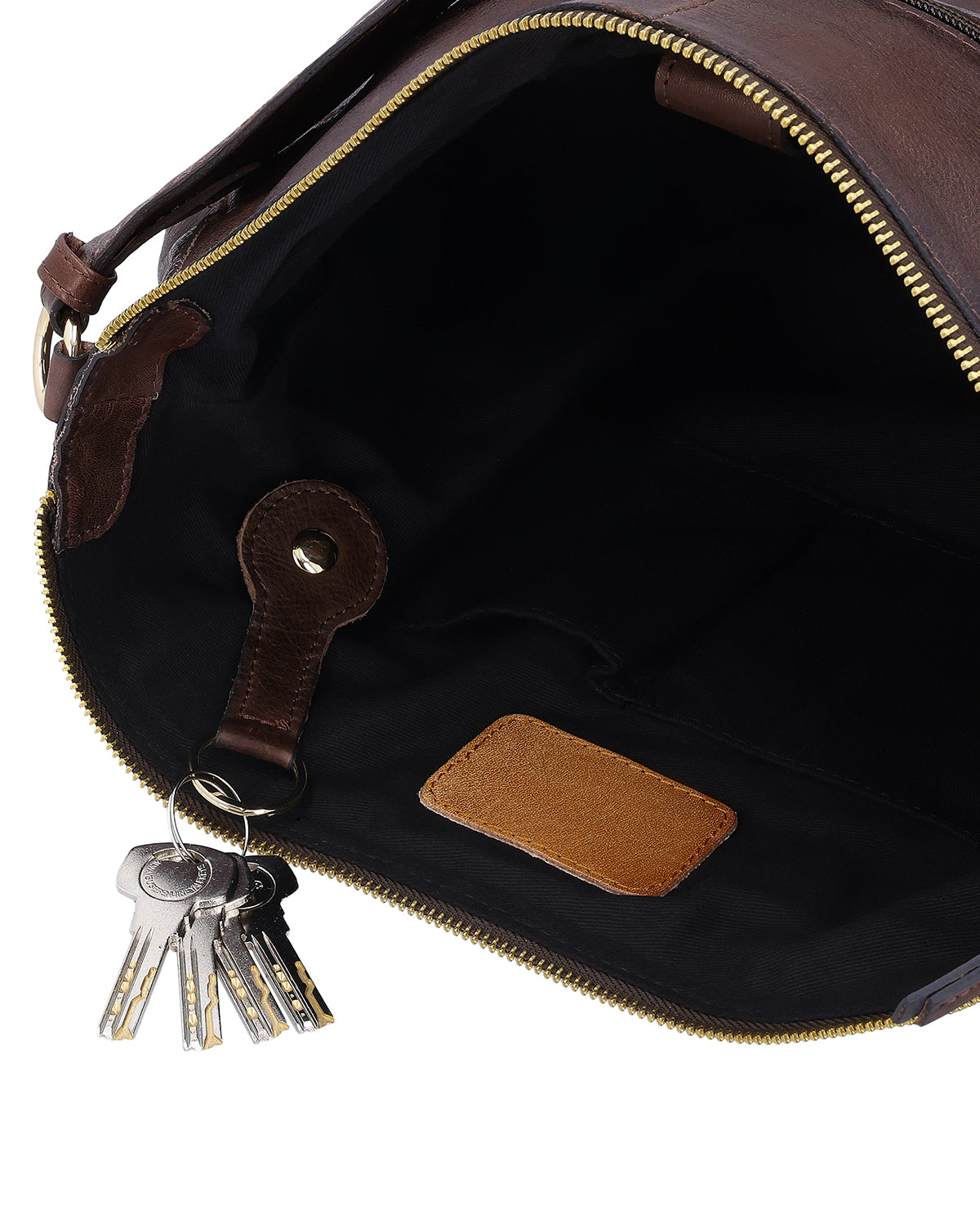 Verschlossen wird "Hannah" mit einem robusten Reißverschluss, damit nichts herausfällt oder verloren geht. Innen findest Du genug Raum für Deine Trinkflasche, Geldbörse, Notizbücher, Schlüssel und Stifteetui. Besonders praktisch ist der integrierte Schlüsselringhalter, mit dem Du Deine Schlüssel sicher befestigen und dennoch schnell zur Hand hast. Zusätzlich verfügt "Hannah" über ein geheimes AirTag-Fach, das unauffällig am Taschenboden oder direkt unter dem Reißverschluss angebracht ist – für extra Sicherheit unterwegs. Auf der Rückseite gibt es ein aufgesetztes Reißverschlussfach, ideal für Smartphone oder Kopfhörer, sodass Du alles stets griffbereit hast. Unsere Produkte stammen von Produzenten, die höchste Standards in Qualität, Nachhaltigkeit und faire Arbeitsbedingungen erfüllen. Mit Deiner Wahl unterstützt Du eine verantwortungsbewusste Industrie, die sich für Umweltschutz und faire Arbeitspraktiken einsetzt – so zeigst Du nicht nur Deinen Stil, sondern auch Dein ethisches Bewusstsein.