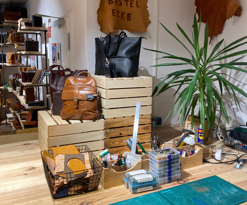 Unser Laden bietet eine kostenlose Gelegenheit kreativ zu werden. So kannst Du z.B. Deine gekauften Taschen hier direkt selbst personalisieren und mit einer Gravur versehen. Außerdem kannst aus Lederresten z.B. kleine Anhänger basteln. Die Lederreste stammen dabei von alten unverkäuflichen Taschen. Nachhaltigkeit ist ein elementarer Gedanke unseres täglichen Handelns.