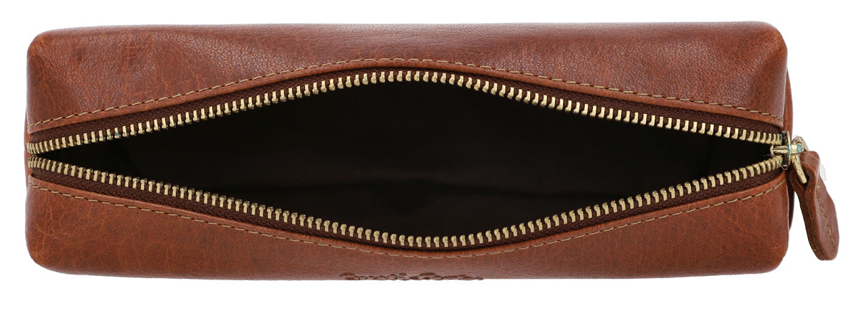 Diese elegante Stiftemappe aus hochwertig verarbeitetem, stabilem Leder ist der ideale Begleiter für Arbeit und Uni. Im Inneren bietet „Peter“ viel Platz für Deine Stifte – so kannst Du problemlos Textmarker, Kulis und Bleistifte bei Dir haben. Ein Reißverschluss hält alles sicher fest und verhindert, dass etwas unkontrolliert in die Tasche purzelt. Besonders praktisch: „Peter“ ist innen mit wasserabweisendem Polycotton ausgekleidet. So schützt „Peter“ Deine Lieblingsstifte zuverlässig vor Nässe und Feuchtigkeit – innen wie außen. Ein echter Sorglosmacher eben!