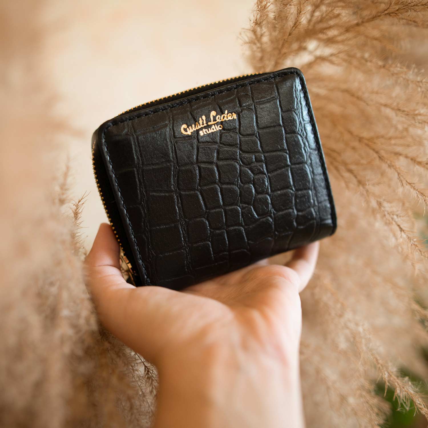 Du suchst ein klassisches Portmonnaie mit genug Platz für deine vielen Karten mit extragroßen Münzfach? "Monika" bietet dir genau das und besticht auch noch durch ihren trendy Kroko Look! Somit vereint Monika maximale Funktionalität und liegt dabei trotzdem voll im Trend.