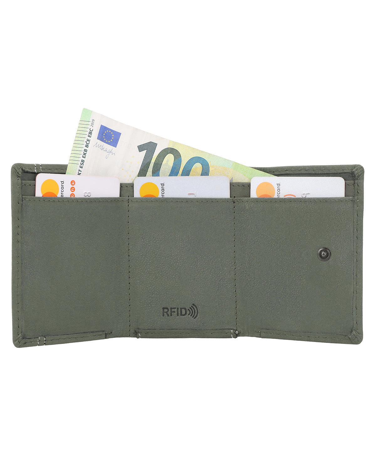 "Ronald" überzeugt im Inneren durch 3 Einschubfächer, einem Geldscheinfach und einem Münzfach auf der Vorderseite, welches mit einem Druckknopf geschlossen wird. So kann nichts rausfallen und alles bleibt geordnet. Für den kleinen Alltagsmoment gibt es zusätzlich ein extra Münzfach für eine einzelne Münze – perfekt, wenn Du schnell eine passende Münze griffbereit haben möchtest. Zusätzlich verfügt "Ronald" noch über ein Einschubfach hinten - für den einfachsten Zugang.