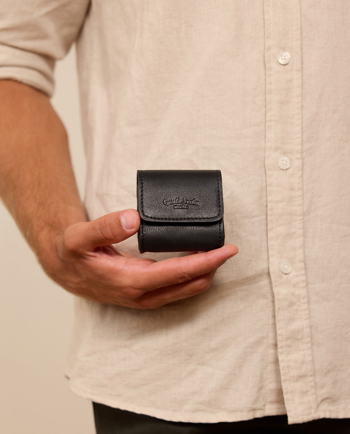 Die "Andrico" Schutzhülle für Deine AirPods und ähnliche Kopfhörer kombiniert praktischen Schutz mit stilvollem Design. Hergestellt aus hochwertigem echtem schwarzem Leder, schützt sie Deine Kopfhörer nicht nur vor Kratzern und Stößen, sondern verleiht ihnen auch eine edle und zeitlose Optik. Egal, ob Du unterwegs bist oder Deine Kopfhörer sicher verstauen möchtest – die "Andrico" Hülle ist der perfekte Begleiter für jeden Anlass.