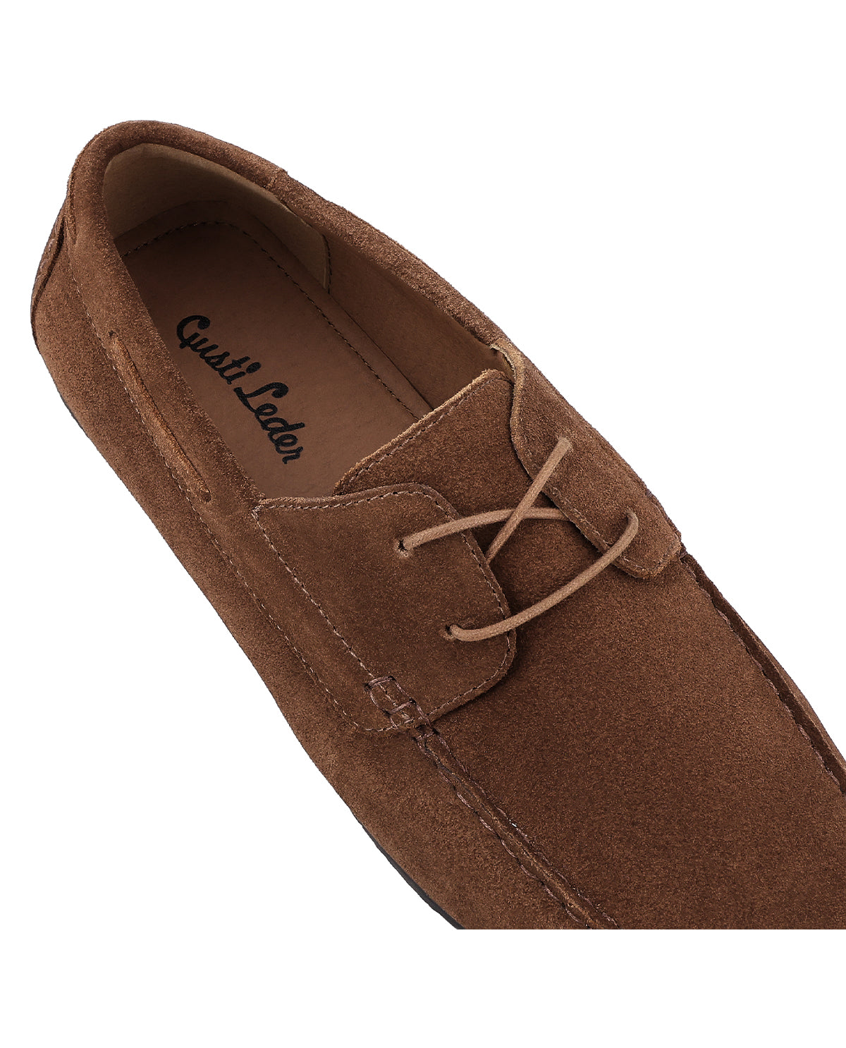 Der Mokassin „Elex“ ist die perfekte Wahl für Männer, die entspannten Stil mit hochwertigem Komfort verbinden möchten. Gefertigt aus edlem cognacfarbenem Veloursleder, verleiht er Deinem Outfit eine warme, maskuline Note und lässt sich vielseitig kombinieren – ob zur Chino, Jeans oder sommerlichen Stoffhose. Die weiche Oberfläche des Leders sorgt für ein angenehmes Tragegefühl und unterstreicht den hochwertigen Charakter des Schuhs. Dank der flexiblen Konstruktion begleitet Dich „Elex“ zuverlässig durch lange Tage und bietet Dir genau die Balance aus Stilbewusstsein und Bequemlichkeit, die Du im Alltag schätzt.