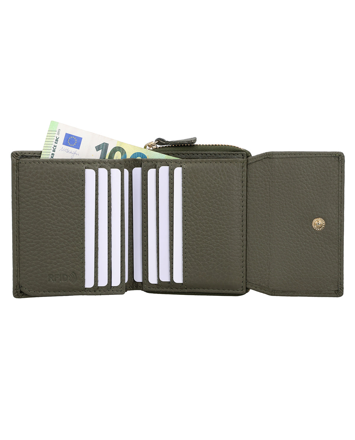 Du suchst nach einem funktionalen, kompakten und schicken Geldbeutel, der in jede Tasche passt? Mit vielen Unterteilungen und extra Sichtfenster kommt unsere "Brigitta" daher! In angesagter Optik sieht "Brigitta" nicht nur überaus stylisch aus, sondern vereint auch noch Funktionalität und Stilsicherheit! Zusätzlich ist „Brigitta“ mit einem RFID-Schutz ausgestattet, der es Unbefugten deutlich erschwert, Deine Kartendaten kontaktlos auszulesen – für mehr Sicherheit im Alltag.