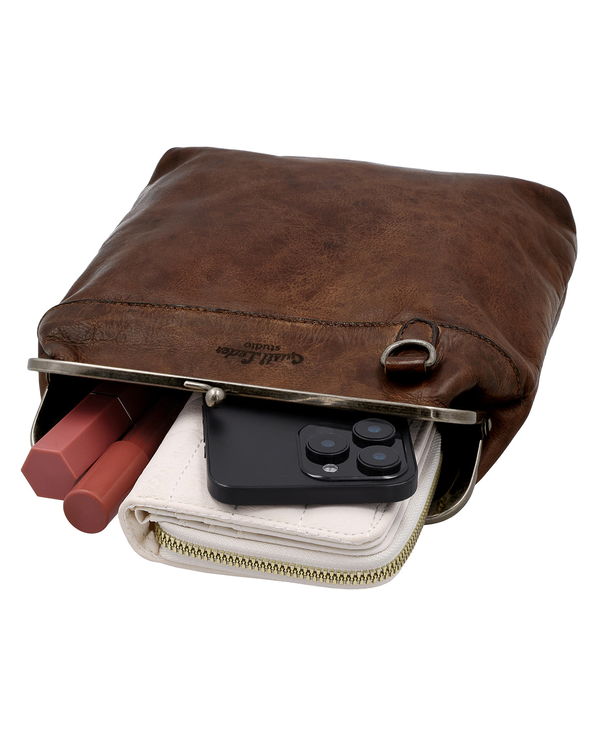 "Karlotta" verbindet dezente Raffinesse mit durchdachter Funktionalität und wird so zu einer zuverlässigen Begleiterin für Deinen Alltag. Gefertigt aus chromfrei gegerbtem Leder überzeugt sie mit einer geschmeidigen Haptik und einem modernen Design. Der praktische Knipsverschluss ermöglicht Dir ein schnelles Öffnen und Schließen, während der verstell- und abnehmbare Trageriemen Dir maximale Flexibilität schenkt – ob als elegante Schultertasche oder quer getragen für einen entspannten Look. Ein diskret integriertes AirTag-Fach gibt Dir zusätzliche Sicherheit unterwegs.