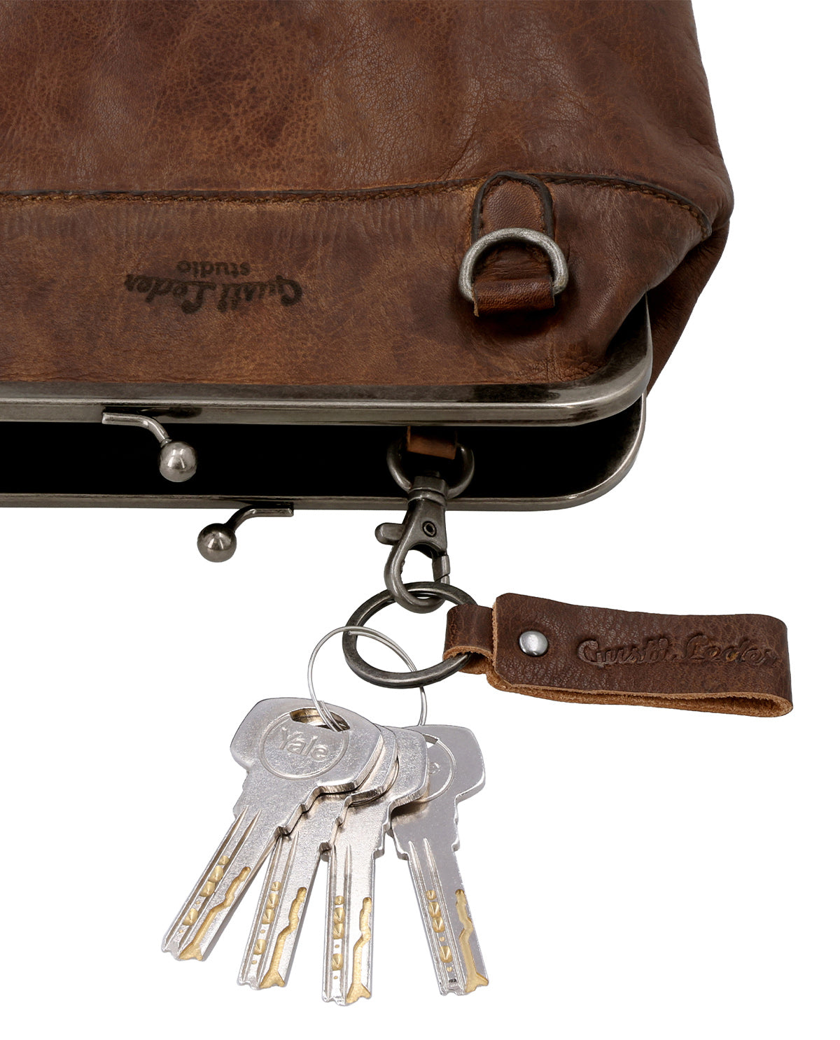 Im Inneren überzeugt "Karlotta" mit einer cleveren Aufteilung: Die Reißverschlusstasche hält wichtige Kleinigkeiten sicher an Ort und Stelle, während ein integrierter Schlüsselhalter dafür sorgt, dass Du Deine Schlüssel im Handumdrehen findest. Das dezente Gravurpatch verleiht der Tasche eine persönliche, hochwertige Note und macht sie zu einem stilvollen Accessoire, das Dich lange begleitet. Mit "Karlotta" genießt Du Komfort, Qualität und ein Design, das mühelos mit Deinem Alltag Schritt hält.