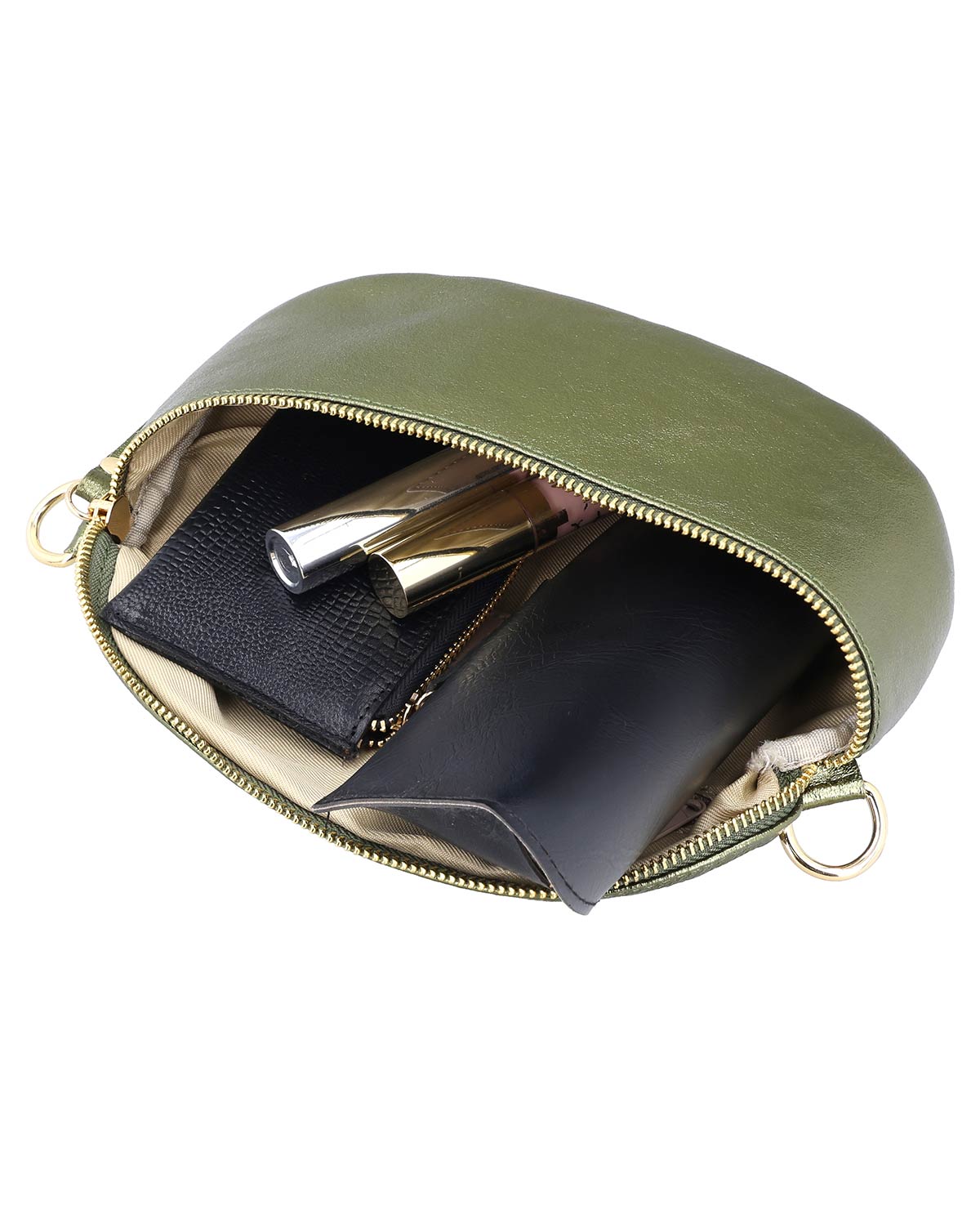 The "Brinja" shoulder bag impresses with its elegant design and high functionality. With the distinctive, semi-circular silhouette and the complete zipper along the top edge, it not only offers ample space for your essentials but also security for all your personal belongings. The high-quality leather gives it a noble appearance that perfectly fits into your modern everyday life. Inside, you will also find the finely embossed "Made in Italy" logo, which impressively underscores the origin and quality of this bag.