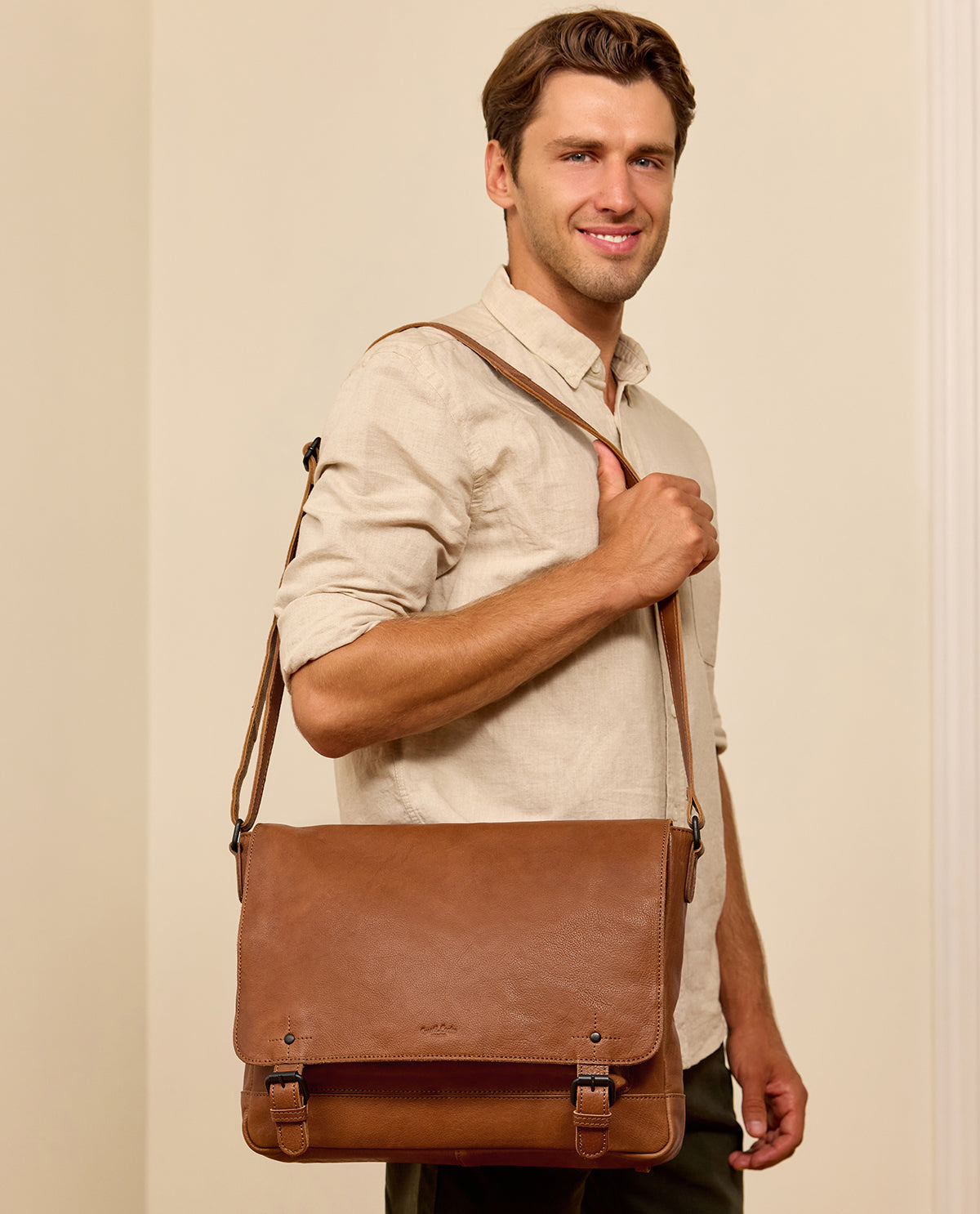 Briefcase business bag luggage strap laptop bag mens brown leather
