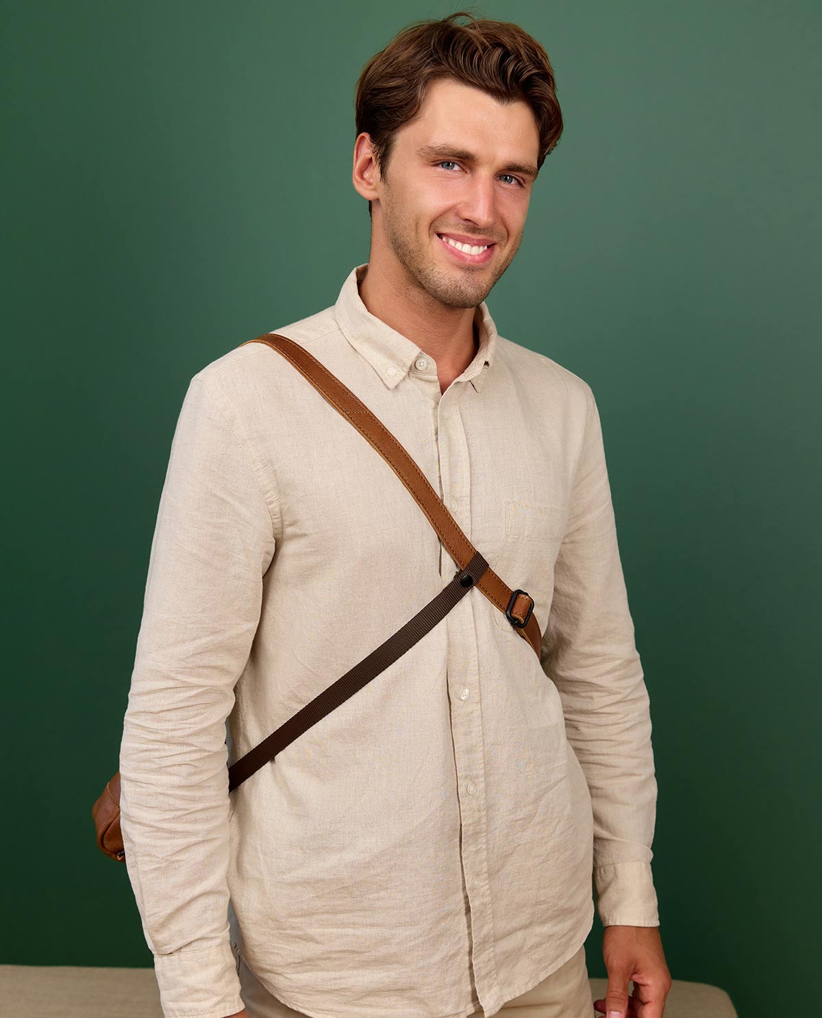 Please note: You can use a total of 30 characters, max. 15 per line. The exact colour of the engraving may vary slightly depending on the product and leather. The white text that you can see in the preview is solely for visibility and contrast, so you can better imagine how your engraving will look. If you only see a patch in the preview, the text of your choice will be engraved on a leather patch that will be sewn inside the bag. If you see the product in the preview, the engraving is positioned as shown in the preview image.