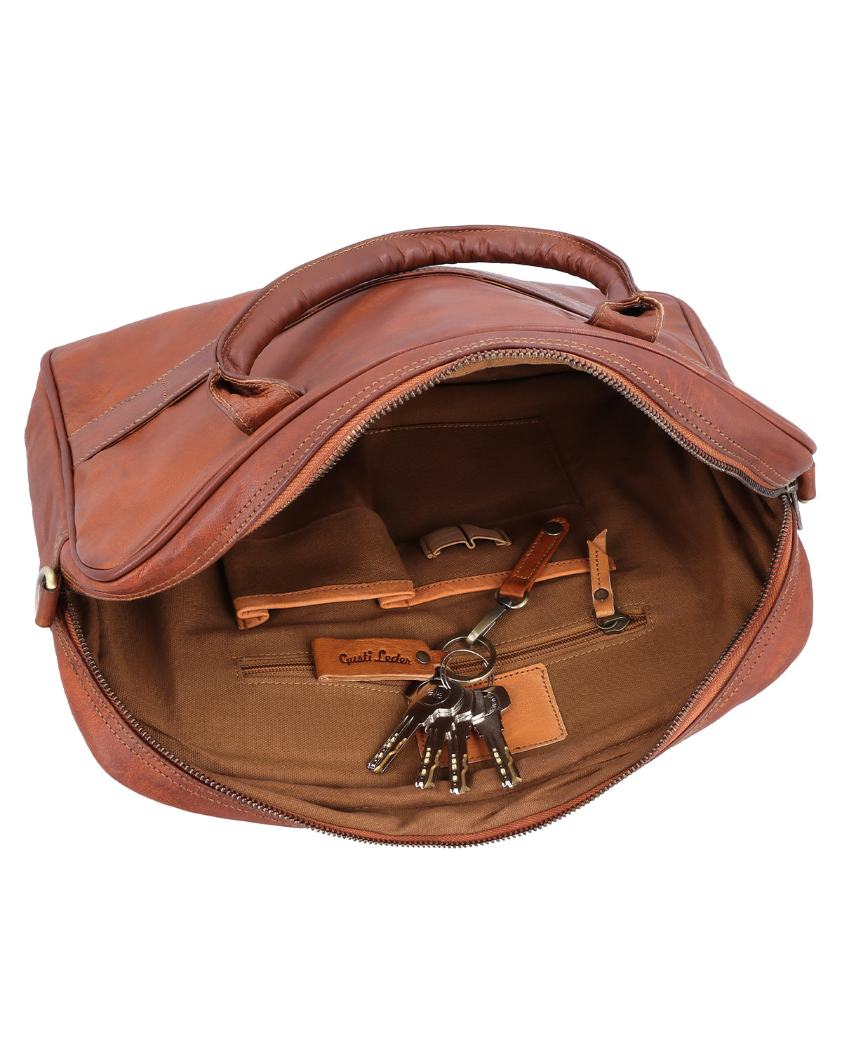 With "Cassius," you are choosing a briefcase that perfectly combines elegance, functionality, and comfort. Made from high-quality leather, it impresses with its clean lines and well-thought-out interior layout. The main compartment with zipper offers generous storage space, while the padded laptop compartment protects your computer. Inside, you will find two slip pockets, a zipper compartment, pen holders, and a removable key ring holder, so everything has its place. An integrated AirTag compartment ensures that you can always find your bag – ideal for your modern working life.