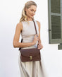 This classic handbag with two additional inner compartments lets you take everything you need for everyday life or an evening with your loved ones! It's not just your current favorite book that will find a place here. Particularly practical: there is a key ring inside, which allows you to securely attach your keys and still have them quickly to hand. There is also a hidden AirTag compartment so that you can keep an eye on "Zoey" at all times when you're out and about. For quick access on the go, "Zoey" also has outer slip pockets where you can store small items within easy reach. You can also easily take "Zoey" with you to the next party, because its look is not only elegant, but also party-ready. The matte gold snap closure is easy to use and completes the elegant vintage look of "Zoey"! In addition, an engraving patch is integrated so that you can add a personal dedication to "Zoey."