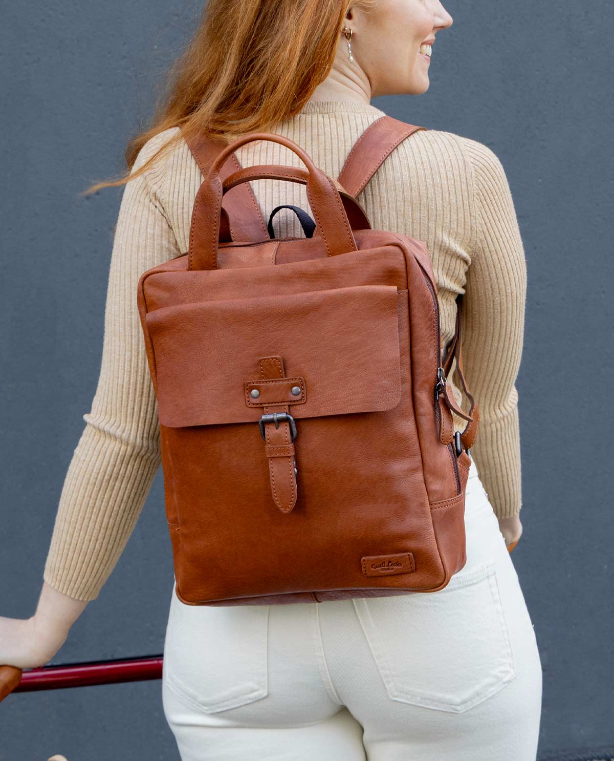 Whether on the bike or on foot – the "Marlin" bike bag is your ideal companion for everyday life. Thanks to the 2-in-1 design, you can effortlessly transform it from a stylish backpack into a practical pannier. Made from high-quality brown leather, it combines functionality with an elegant look.