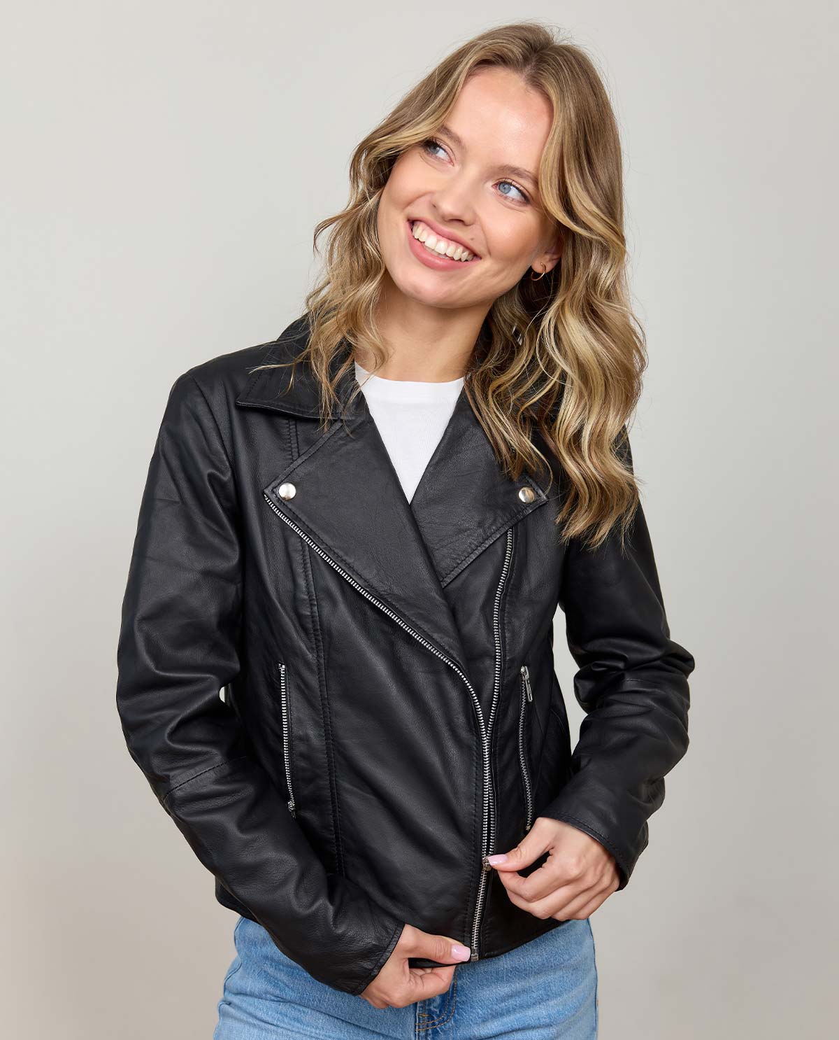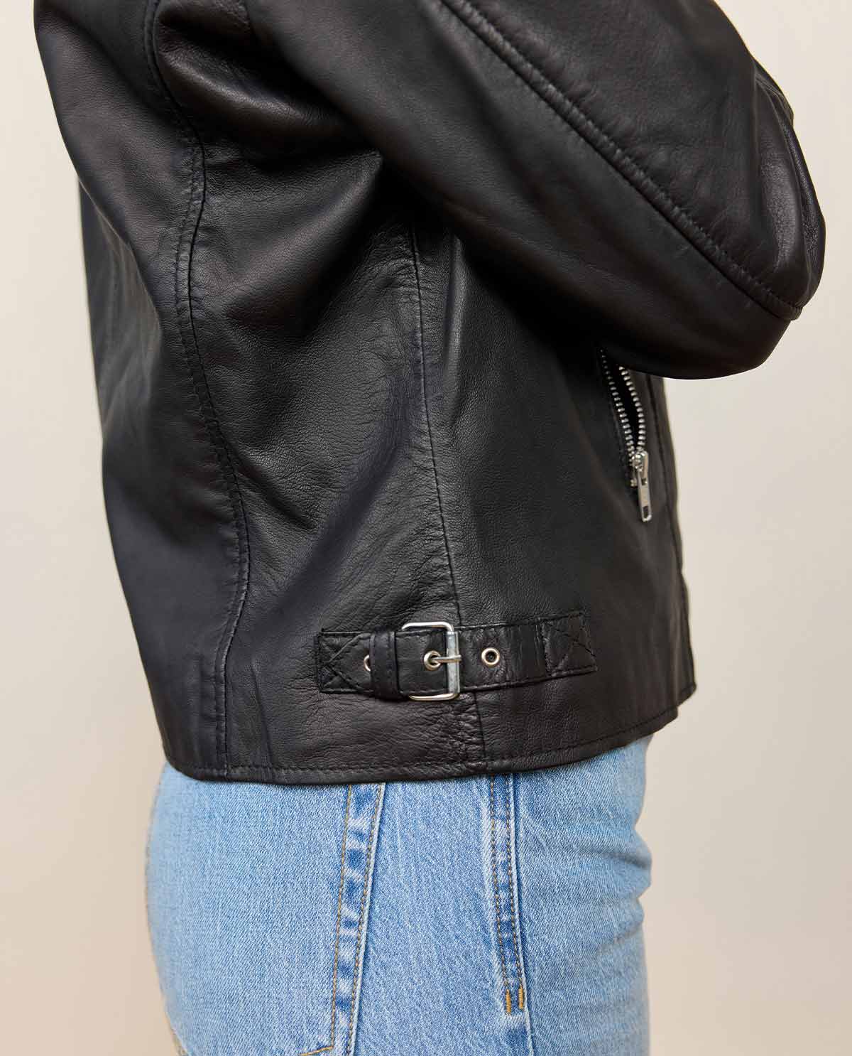 leren jas bikerjas jas echt leer dames zwart leer XS