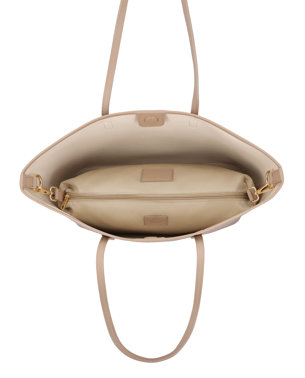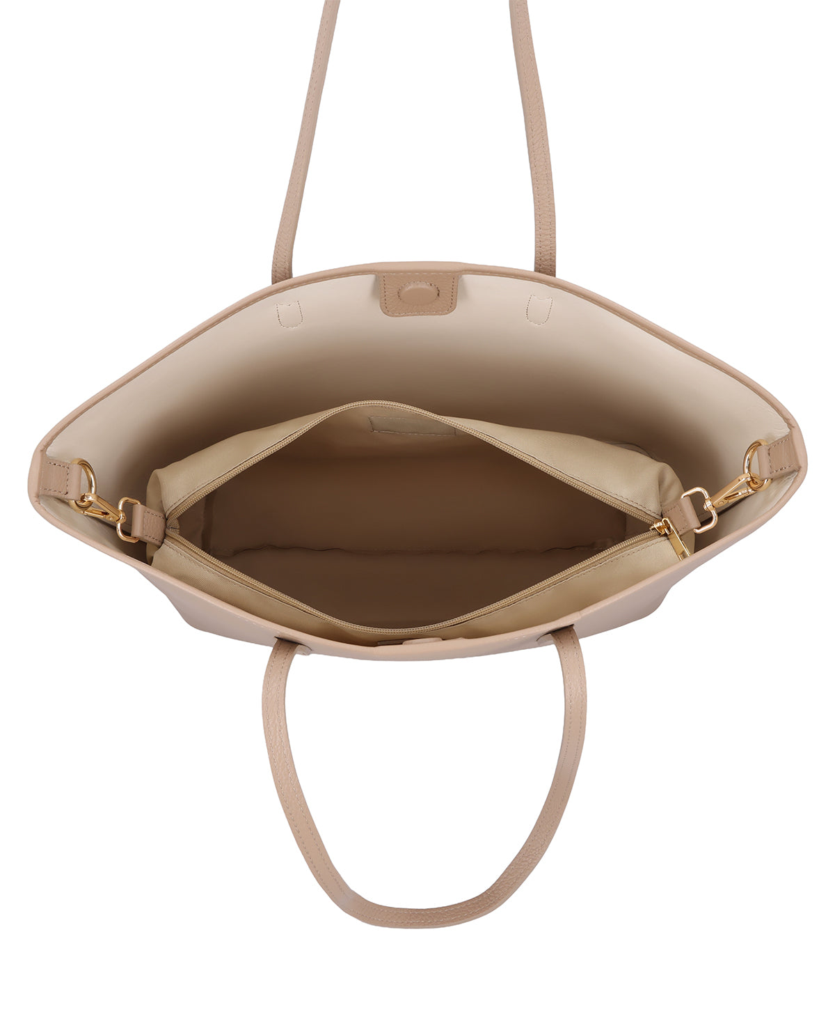 The large “Tilde” handbag is a brown leather handbag for women that stands out thanks to its clean silhouette and functional details. A special highlight is the removable zippered inner pocket, which provides additional structure and can be used separately if needed. The magnetic closure ensures easy opening and secure closing for everyday use. Made in Italy, “Tilde” combines high-quality craftsmanship with timeless elegance.