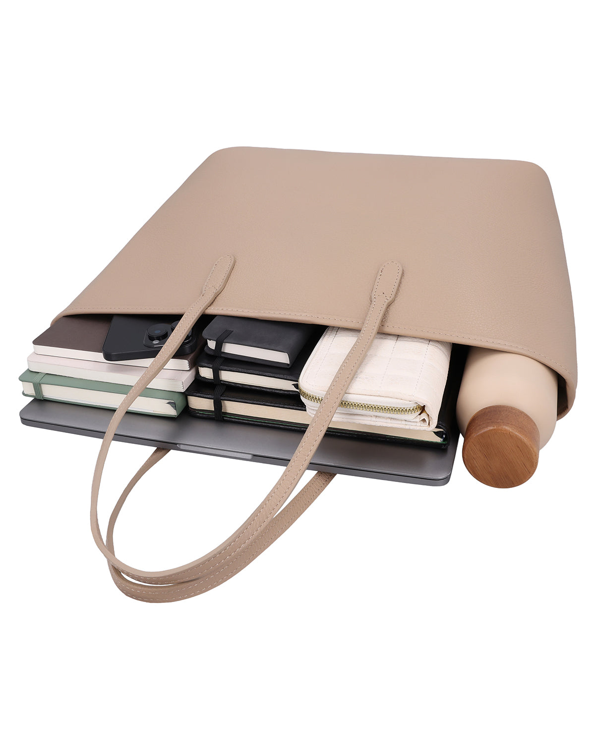 The spacious main compartment offers plenty of room for your essentials and confidently accompanies you through the office, city, or special occasions. The brown leather is modern and versatile. An engraving patch allows you to personalize it, making “Tilde” a unique companion. This large leather handbag for women combines flexibility, clean lines, and Italian craftsmanship in a stylish design.
