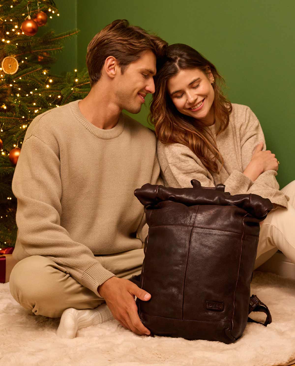 No matter if you take her to the office, university or use her in your free time, our beautiful messenger bag “Joy” will win you over in no time at all. This backpack will charm you with its versatility, comfort and spaciousness as well as its discreet and elegant design. In addition to this, the slim-cut day pack made of brown cowhide leather stands out from the crowd with its trendy roll top—a look that you just can't get away from at the moment.