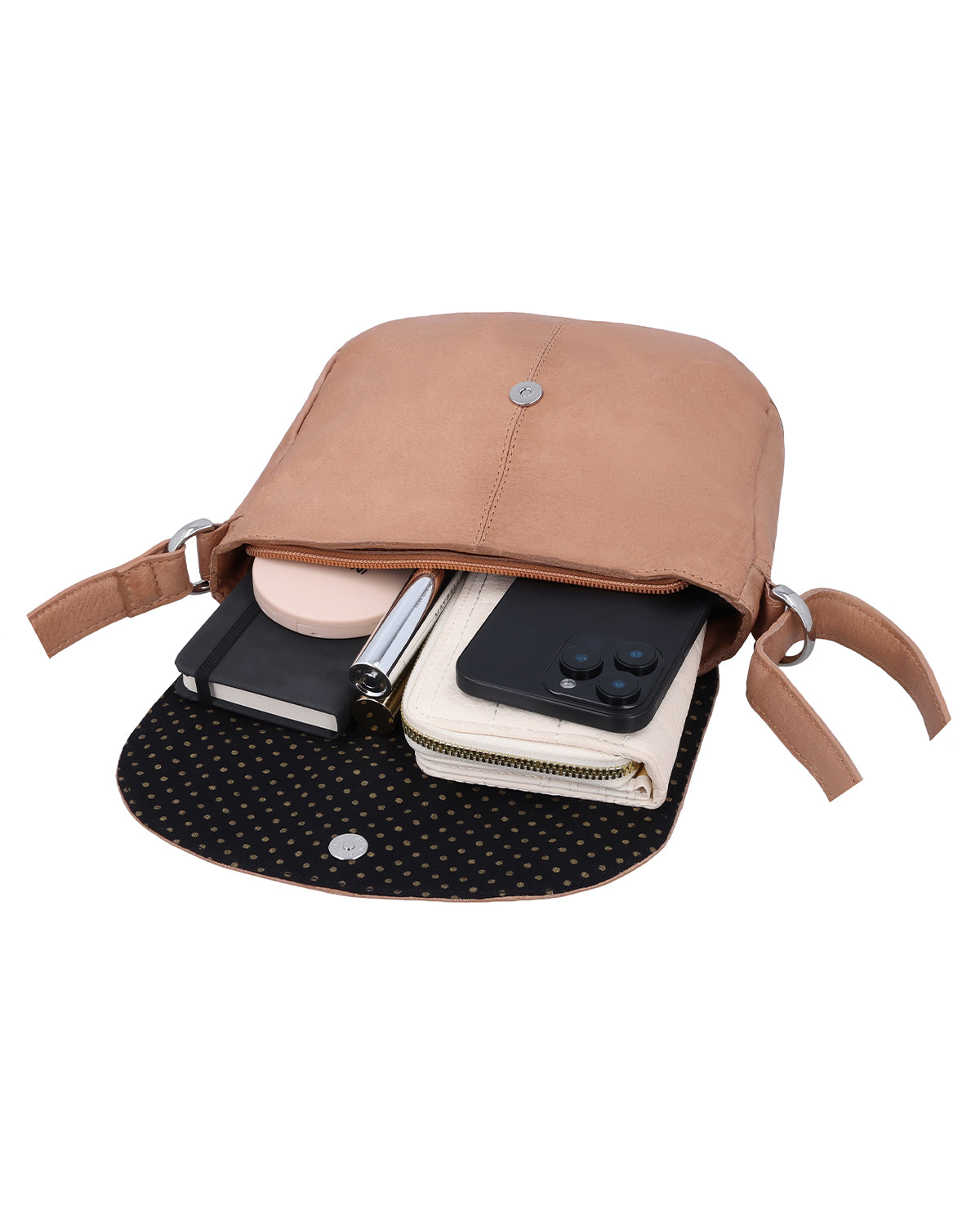 Inside, "Benja" offers a zippered compartment and additional slip pockets to help you organize your essentials. The adjustable shoulder strap adapts to your carrying style and ensures comfort even over longer periods of time. "Benja" is a small leather handbag for women that harmoniously combines naturalness, function, and everyday practicality.
