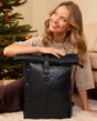 Our “Bendik” roll-top backpack is the perfect companion, no matter if you’re going to school, uni or work. He’ll win you over with his flexibility, comfort, and space. This sturdy, classic daypack made of black leather stands out from the crowd with its trendy roll top—a look that you just can’t ignore at the moment.