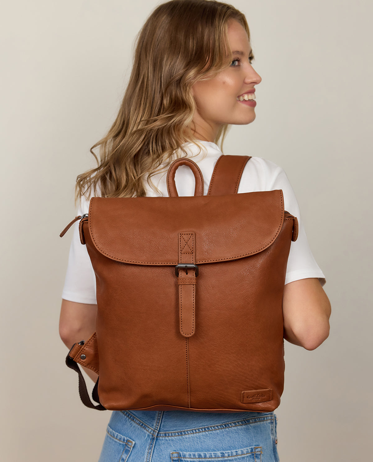 “Kieran” won’t just charm you with its high-quality full-grain leather look, but with his ingenious design too. This 100% leather backpack has more than enough space for all of your essentials and is super comfortable to wear, thanks to its wide full-grain leather straps. The main compartment has a double fastening system; the long zip and thorn-buckle-style snap lock make sure everything stays safe and secure. The extra zipped pocket on the back of the bag provides you with space to keep your valuables hidden and safe from sticky fingers. Add a timeless touch to your wardrobe with “Kieran”.