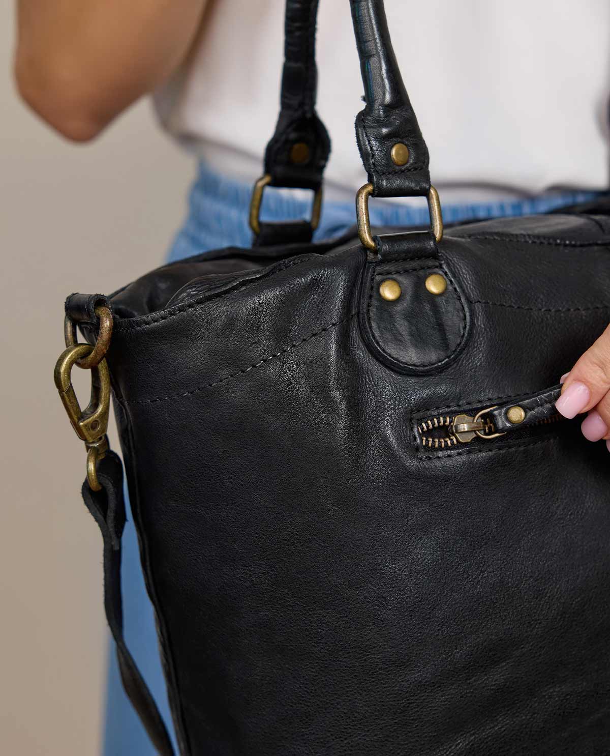 Handbag shoulder bag shopper leather bag women black leather