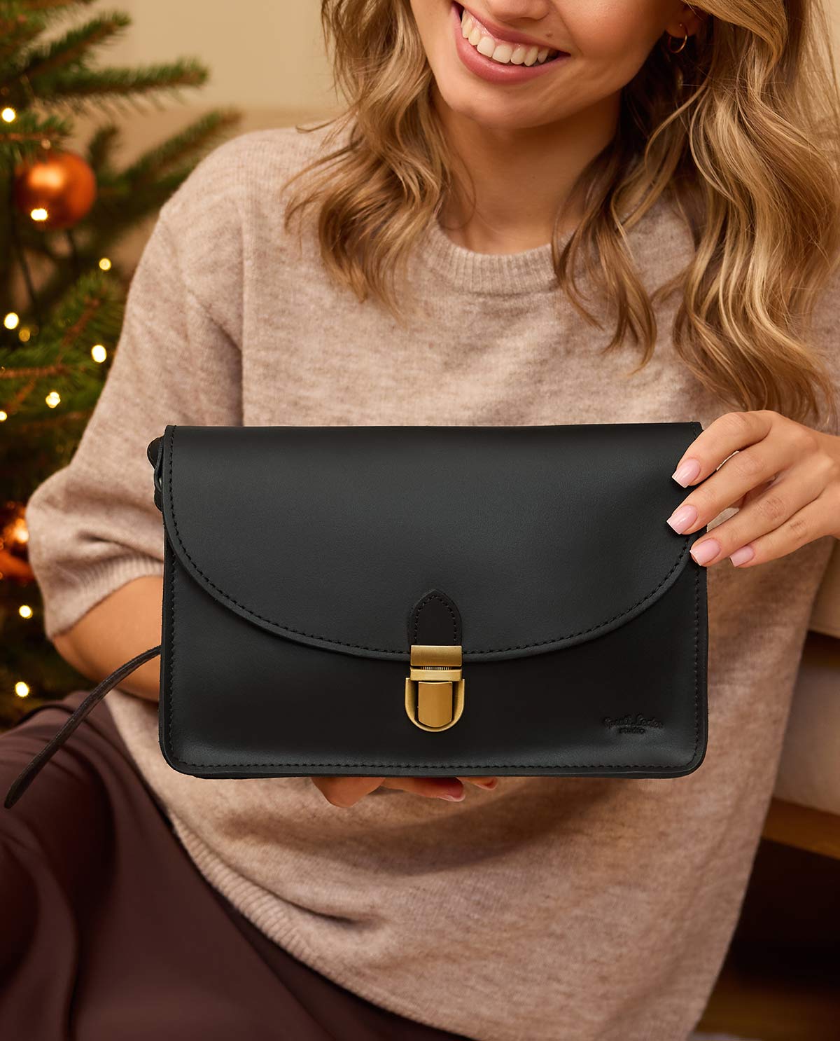 This classic handbag has two compartments inside where you can keep your belongings safe during the day and on big nights out. There's even space for your favourite book. Take our elegant shoulder bag “Zoey” to your next party. The gold fastener is easy to use and completes “Zoey's” sophisticated vintage look.