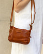 Our spacious handbag “Veronika” is more of a clutch than a shoulder bag. This compact handbag has plenty of space for your belongings in its three compartments. Your things are secured by a sturdy zip. Transform “Veronika” from stylish shoulder bag to elegant clutch in a few seconds by removing the strap. She's perfect for coffee dates with your friends and exploring the city. You can wear her to the club and dance the night away with “Veronika” knowing you look stylish on the dancefloor. She's available in different colours. You might even find your favourite colour in our collection. This stunning handbag is made from sturdy cowhide leather that complements any outfit.