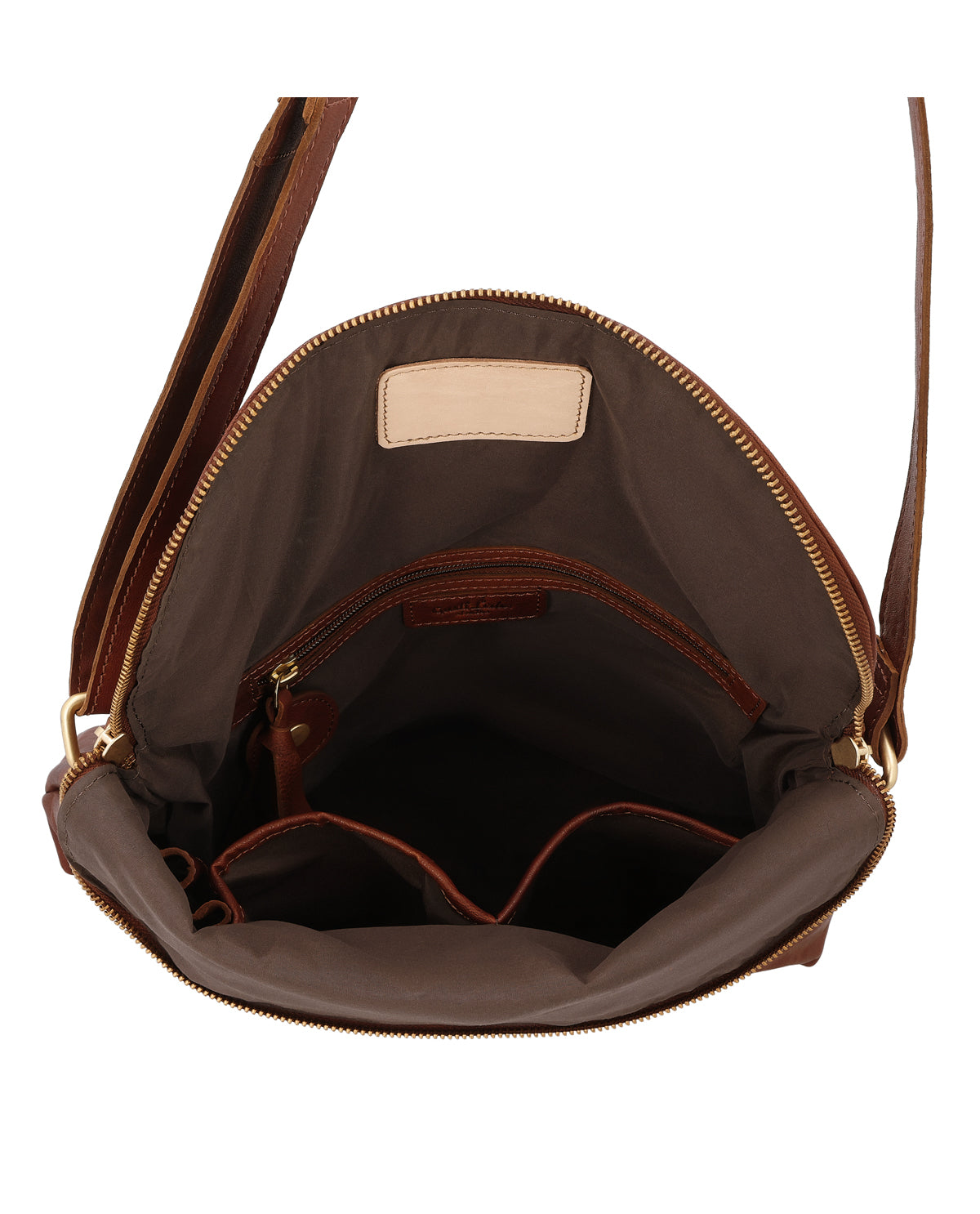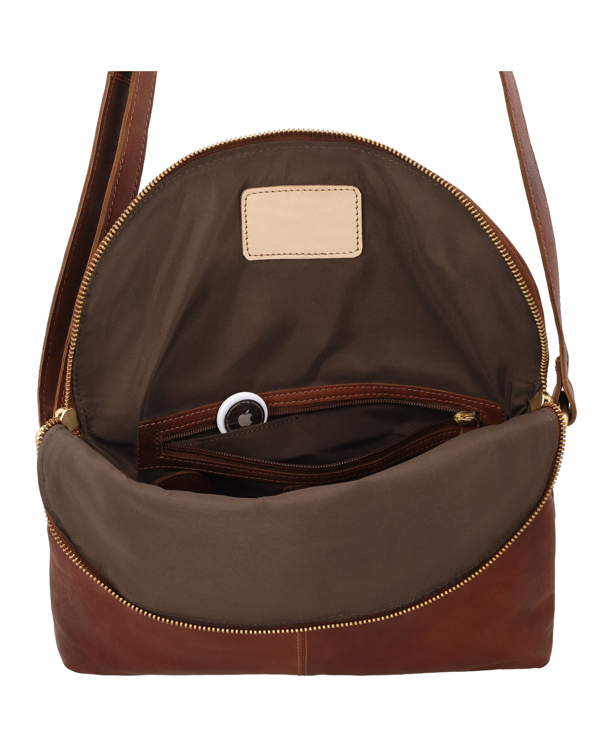 Crossbody bag with AirTag compartment and keychain