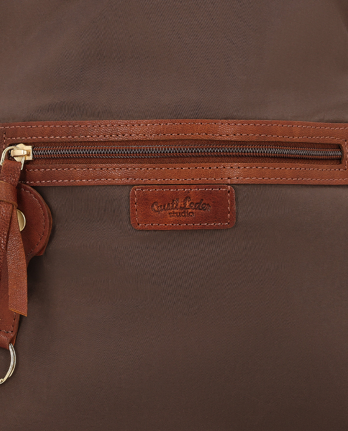 The bag combines classic-timeless design with modern chic and in this way playfully completes each of your outfits with its own special look, which the striking shiny-gold statement zipper gives it. The design is rounded off by a subtle Gusti logo patch on the inside.