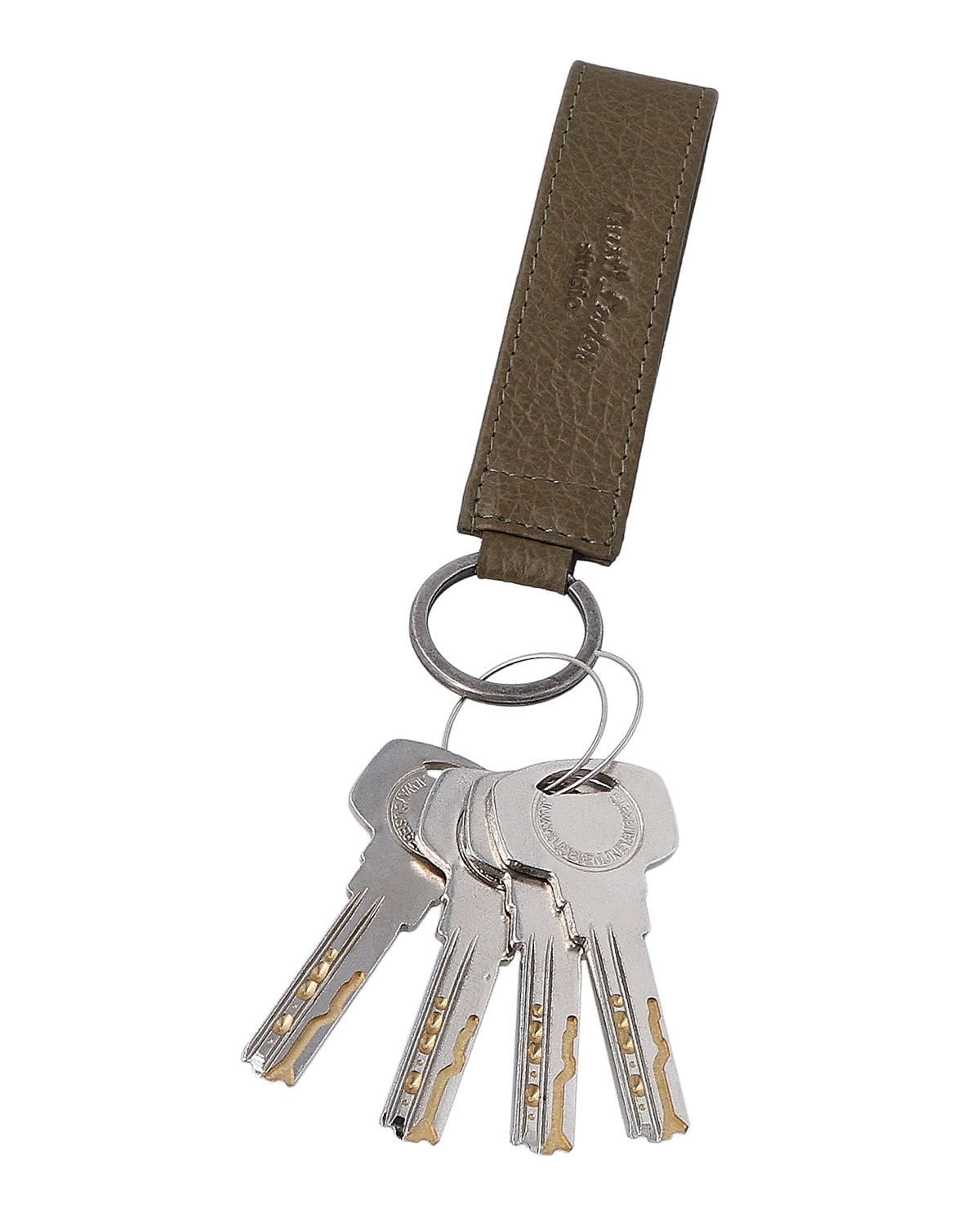 The "Miran" key ring is a green leather accessory for men and women that impresses with its clear shape and minimalist design. The simple design has a timeless look and easily adapts to different bags or key rings. Thanks to the sturdy metal ring, your keys remain securely attached and always within reach. "Miran" stands for uncomplicated functionality in a compact format.