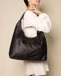 She has a spacious main compartment inside. There's plenty of space for your purse, phone, and current read inside this zipped compartment. All of your things are protected from dust and moisture inside this bag. Keep your smaller items, like your keys or headphones, in the smaller zipped side pocket. The high-quality tanned buffalo leather is discreet and complements any look.