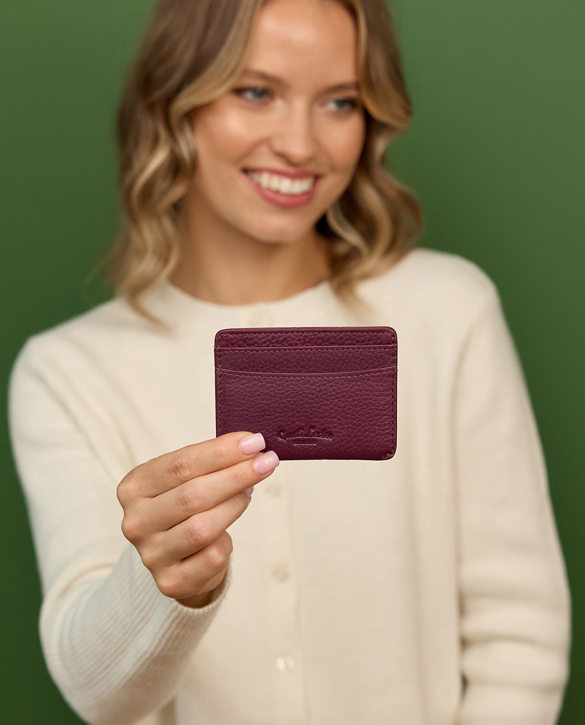 The "Qani" card case is the perfect choice for anyone who values organization and elegance. Made from high-quality purple leather, it impresses with its compact size and elegant design. The noble color and fine craftsmanship make it a stylish accessory that is not only functional but also a real eye-catcher. With this card case, you always have everything important with you – and in the best quality.