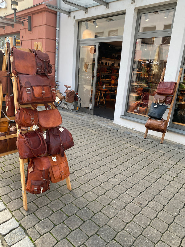 Unser Laden bietet eine kostenlose Gelegenheit kreativ zu werden. So kannst Du z.B. Deine gekauften Taschen hier direkt selbst personalisieren und mit einer Gravur versehen. Außerdem kannst aus Lederresten z.B. kleine Anhänger basteln. Die Lederreste stammen dabei von alten unverkäuflichen Taschen. Nachhaltigkeit ist ein elementarer Gedanke unseres täglichen Handelns.